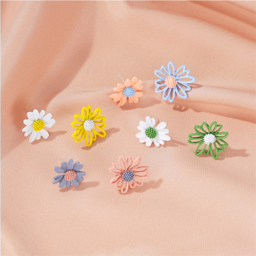 Material: AlloyTreatment process: electroplatingModeling: FlowersInlay material: noneColor: blue orange, yellow and white, pink gray, green and white