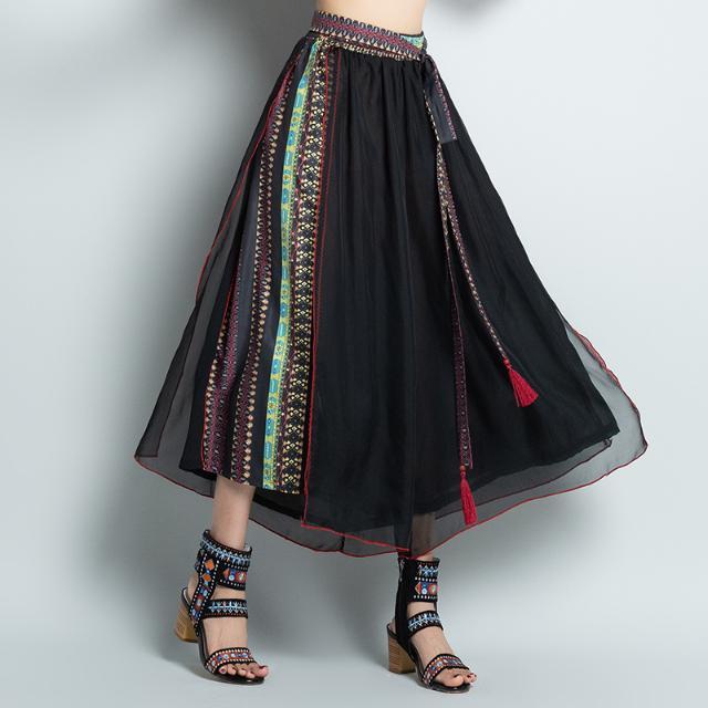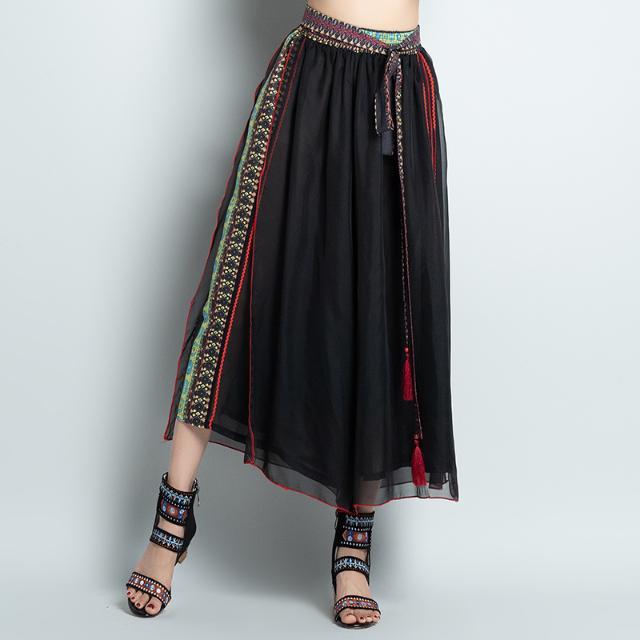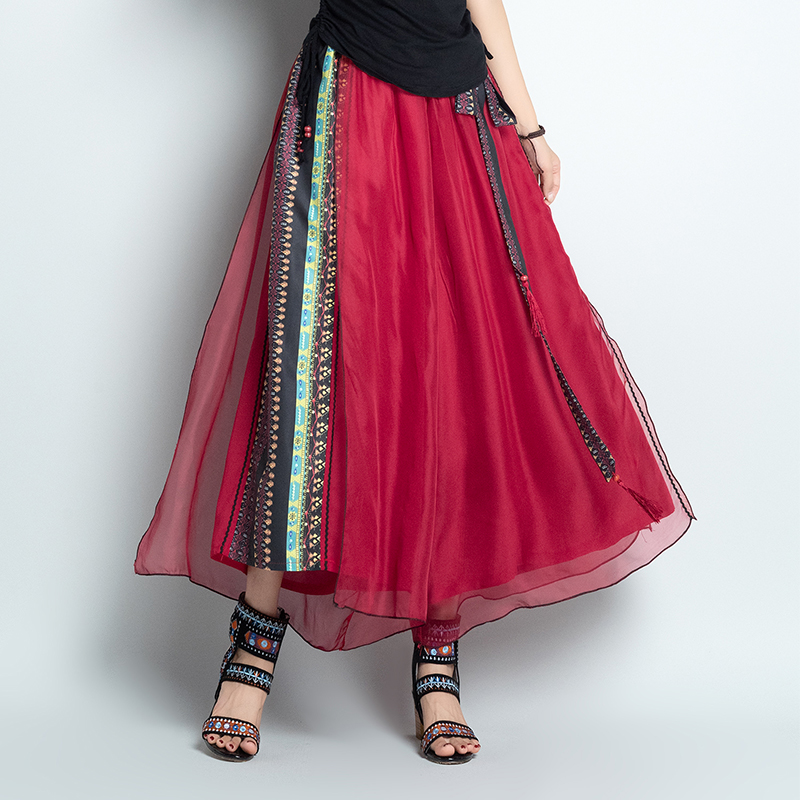 Ethnic Style Women Retro Chiffon Loose Wide-leg Pants