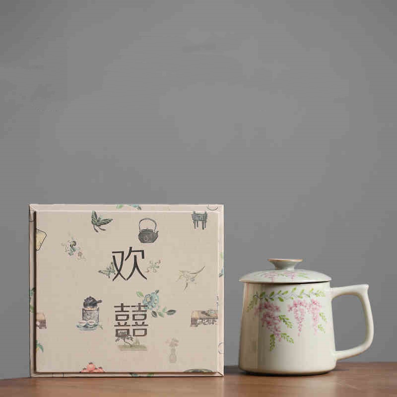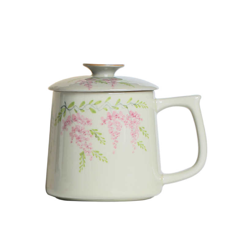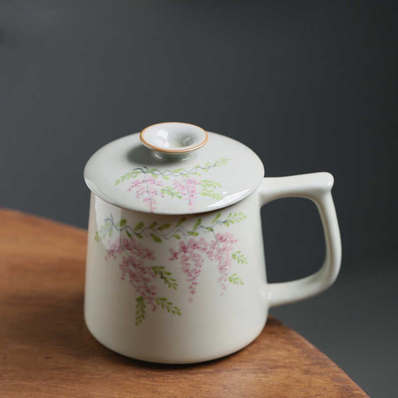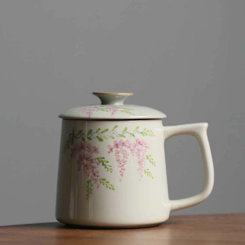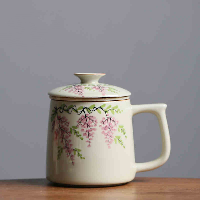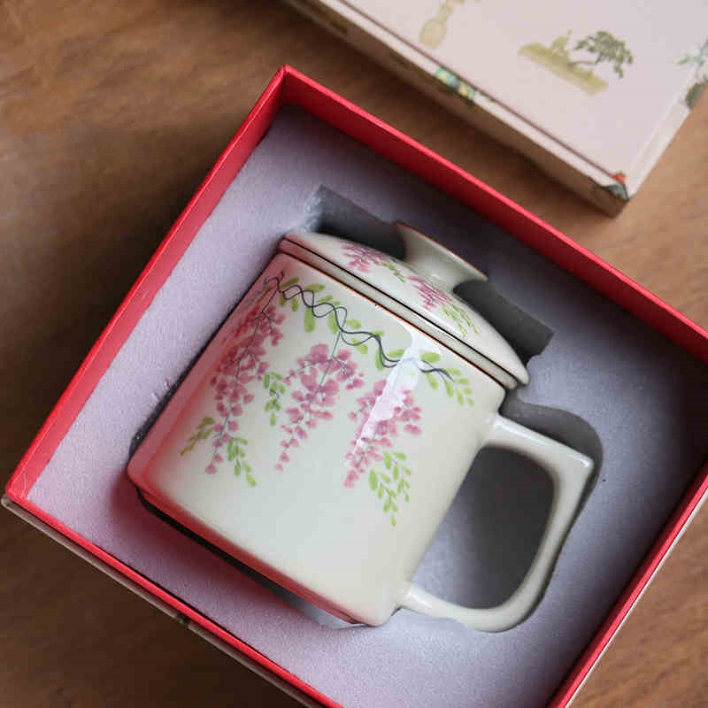 Color classification: hand-painted wisteria flower with cover water Cup hand-painted wisteria flower with cover water cup tea strainer hand-painted wisteria flower with cover water cup gift box hand-painted wisteria flower with cover water cup tea strainer gift box