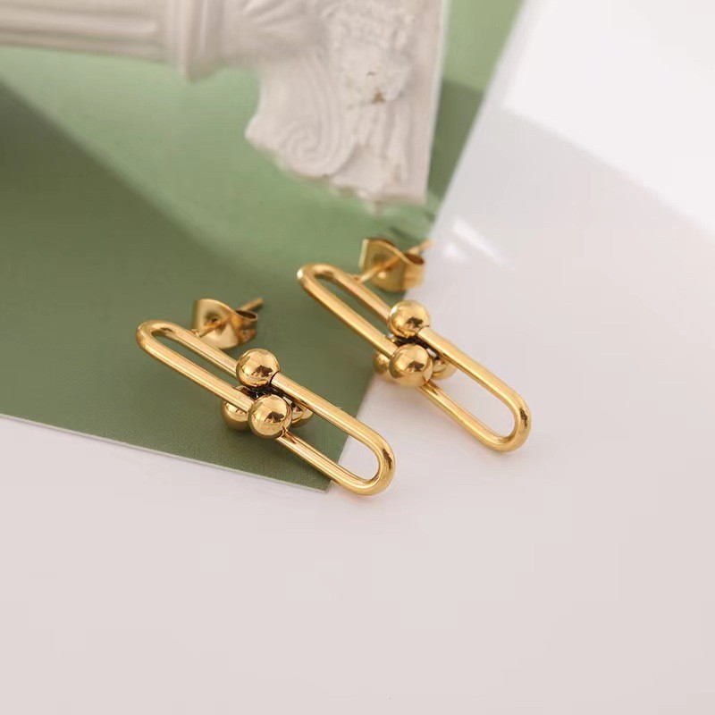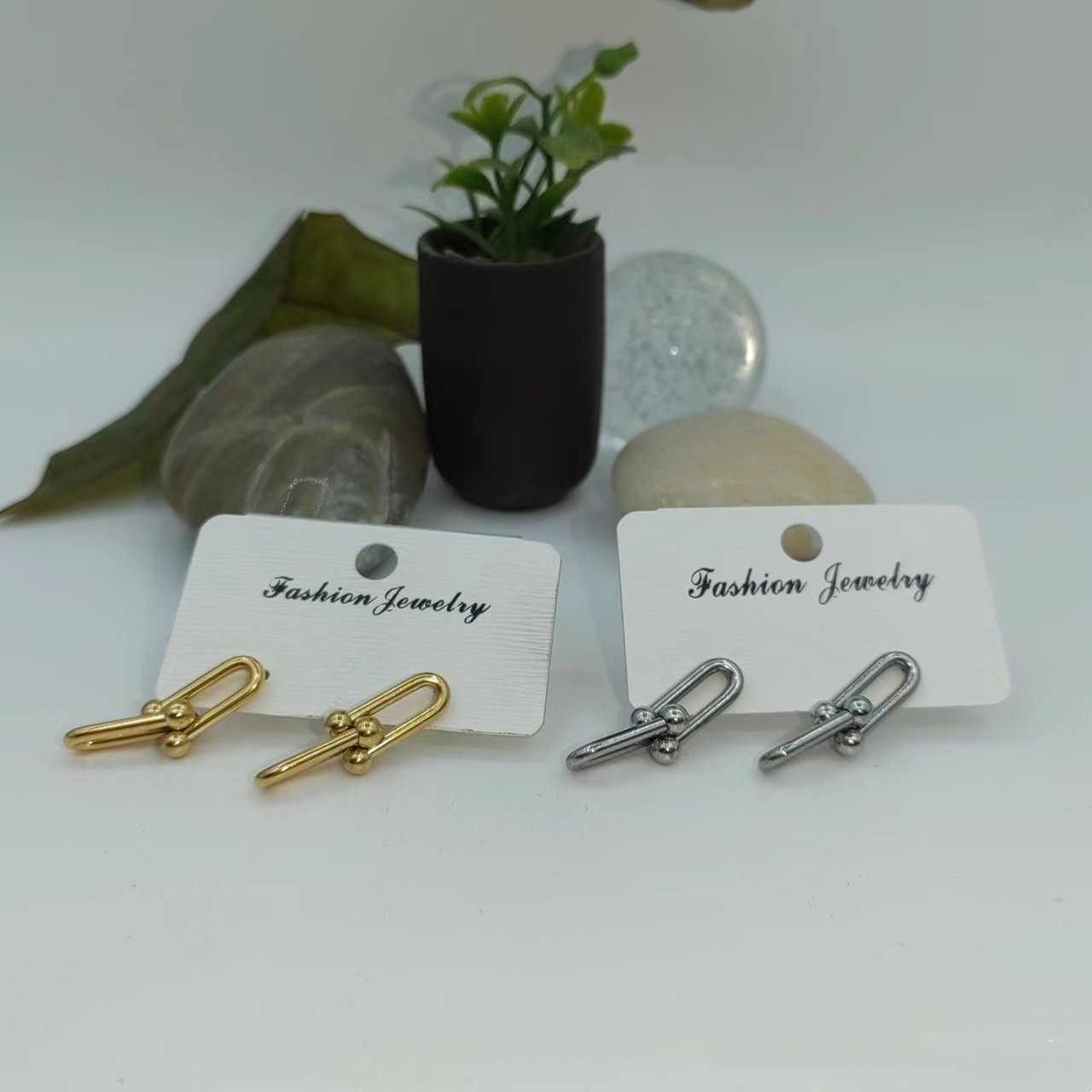 Product information :Material: titanium steelTreatment process: electroplating 18k.Modeling: U-shapedColor: gold 18k, steel colorPacking list:A pair of earrings