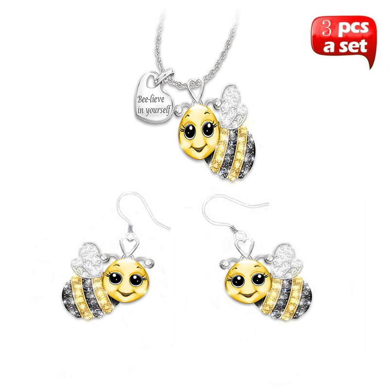 Two-tone owl bee necklace earring set