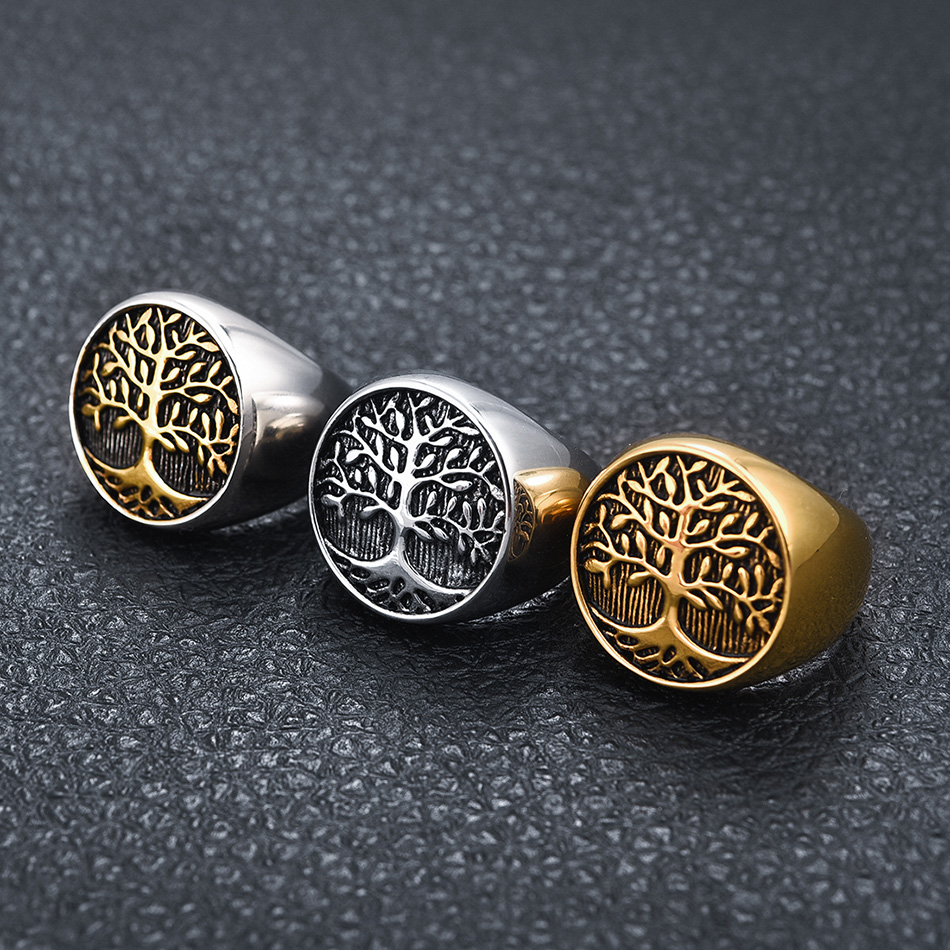 316 stainless steel leaf men's ring wholesale life tree ring ring Europe and America retro titanium steel ring