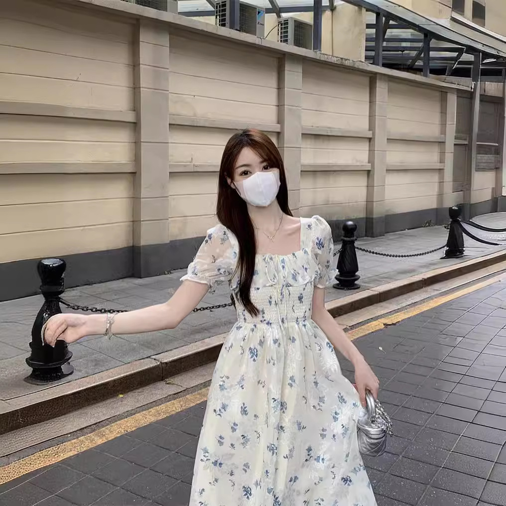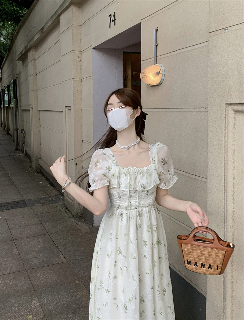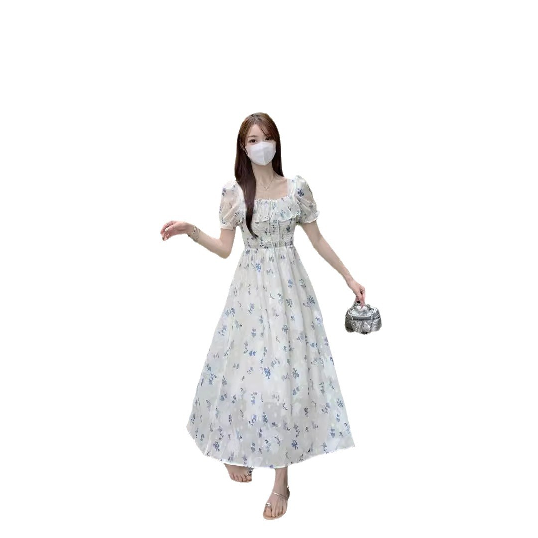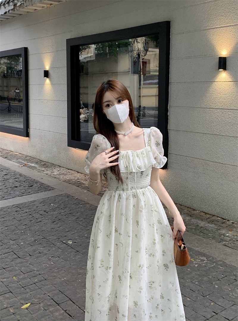 Product information: Color: blue, green Size: S,M,L,XL Skirt length: mid-length skirt Popular elements: puff sleeve Main fabric composition: Polyester (polyester fiber) Skirt Category: Dress Style: commuting style Craft: Bubble Sleeve