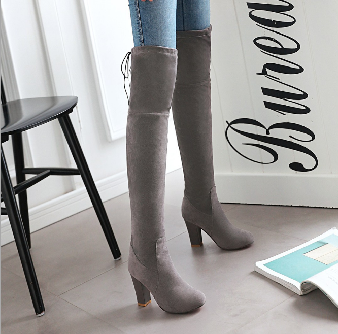 Pointed women's boots over paint stretch boots thick with long boots high heel women's boots