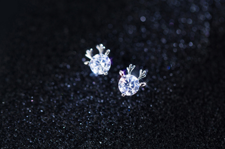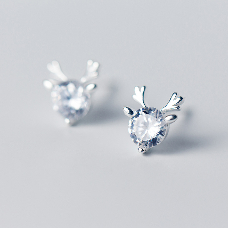 Simple Single Diamond Little Elk Pattern Earrings