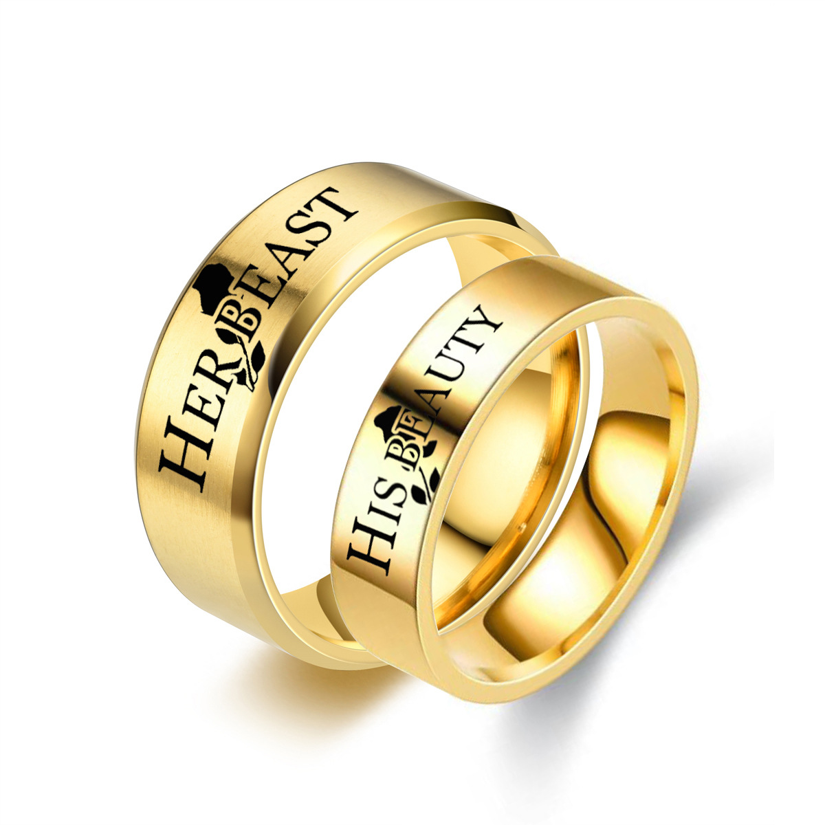 Product information:Type: Ring, ringColor: her Beast Man, his beauty woman Size: no.5, no.6, no.7, no.8, no.9, no.10, no.11, no.12, no.13Style: Unisex Material: titanium steel Shape: Geometry Popular elements: Patterns Style: Natural