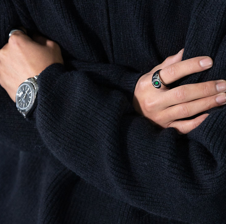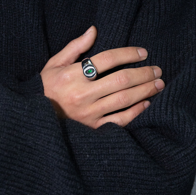 Material: Titanium steelStyle: PunkNew and unique: freshly bakedColor classification: Green Zircon Ring/6 yards, Green Zircon Ring/8 yards, Green Zircon Ring/10 yardsSize:Height: 1.4CM