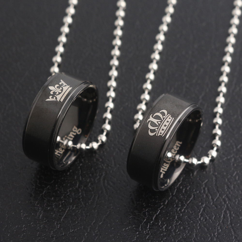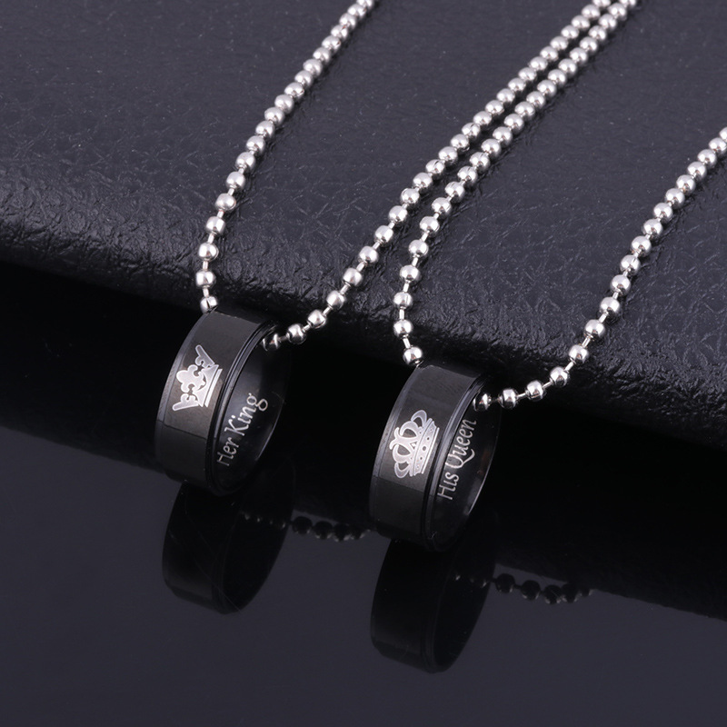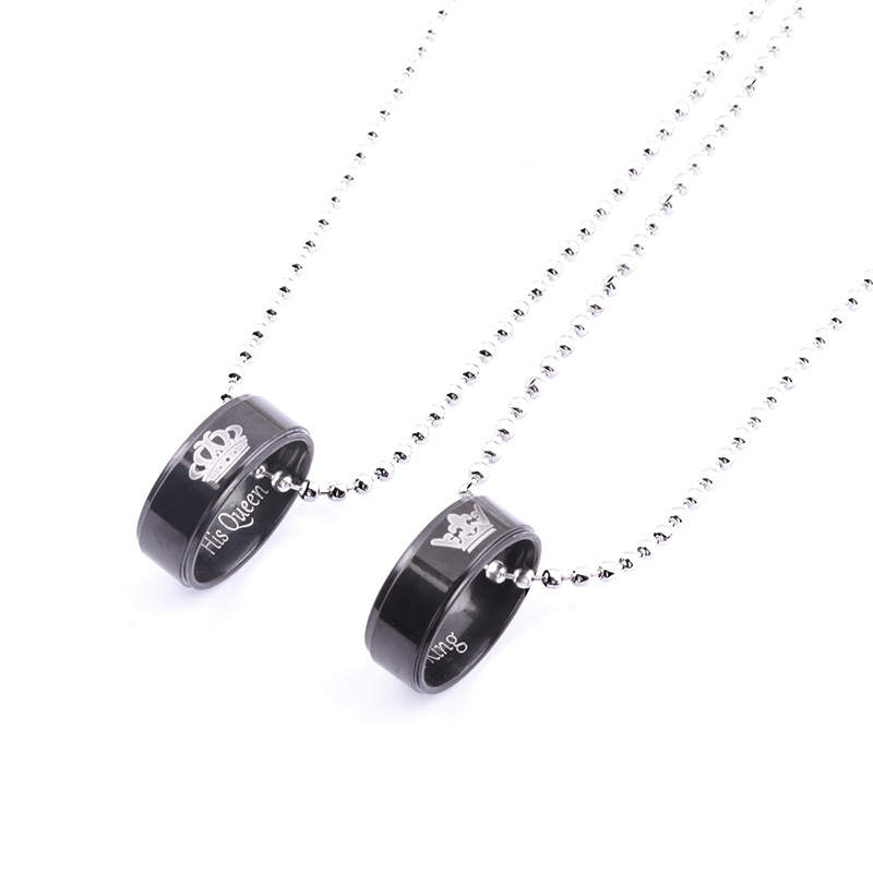 Valentine's Day Simple Crown Necklace Her King His Queen Couple Ring Pendant