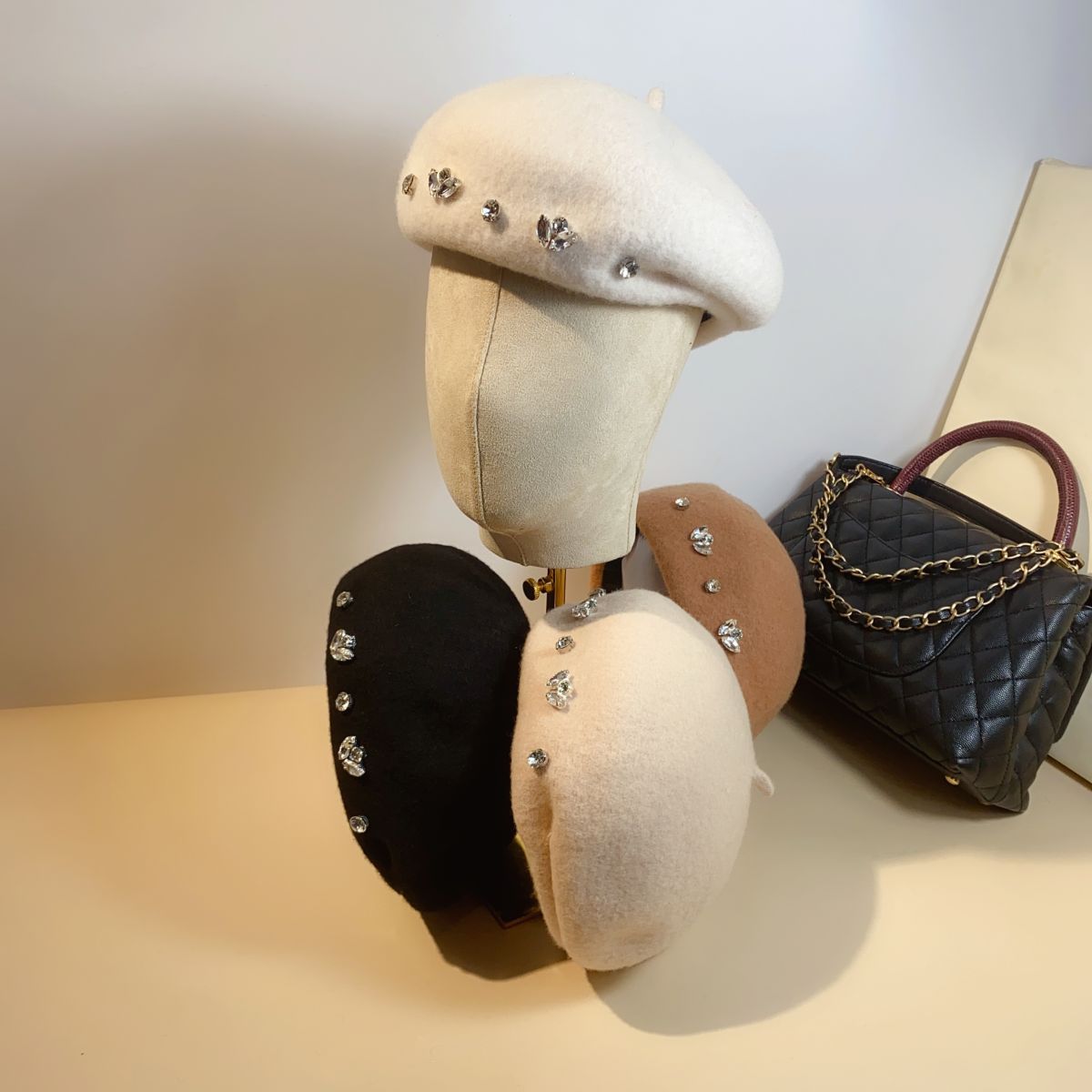 Product information:Processing process: HandmadeColor: Black, Milky White, beige, camelCrown style: DomeMain fabric composition: WoolSize: AdjustableFunction: sunscreen, breathable, sunshadeSuitable season: Winter