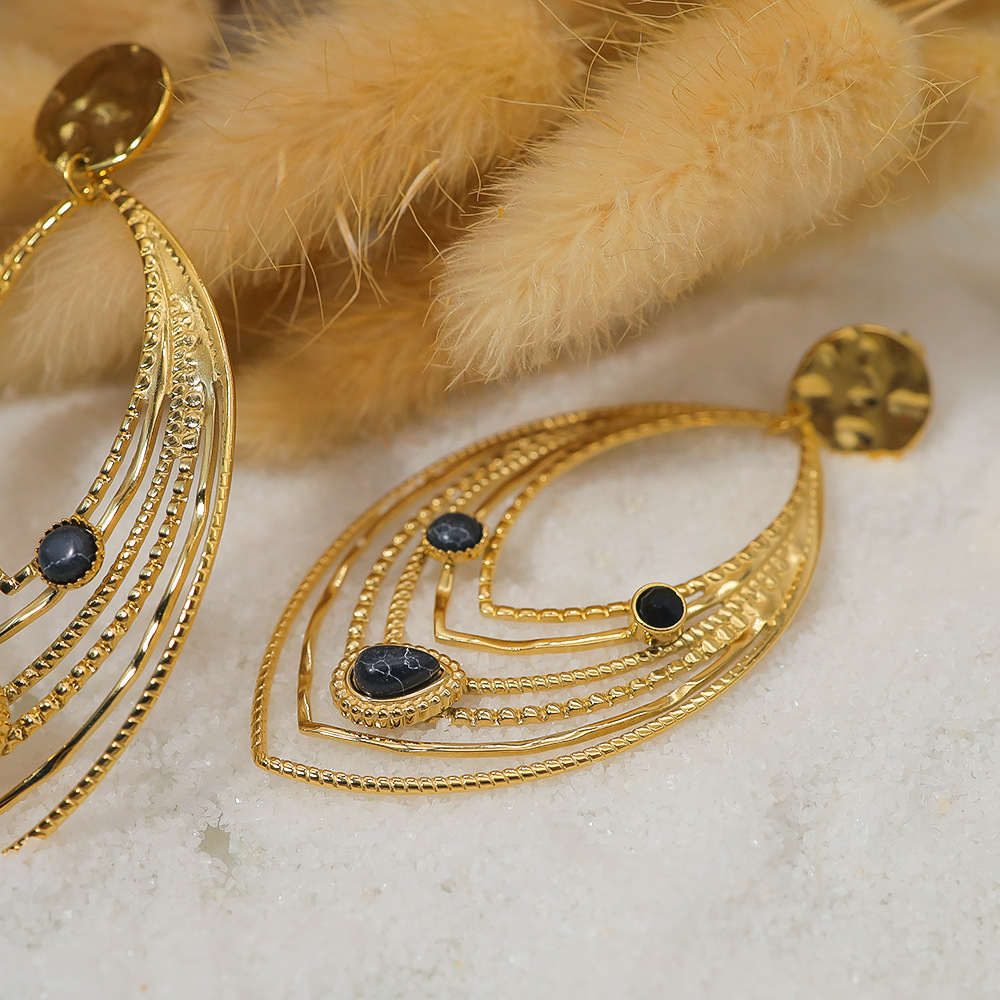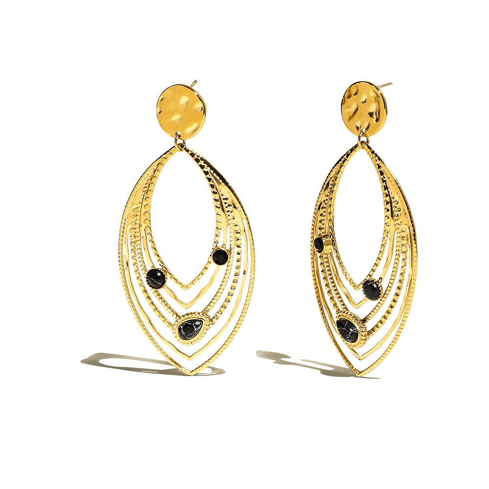 Exaggerated Leaves Natural Stone Titanium Steel Ear Studs