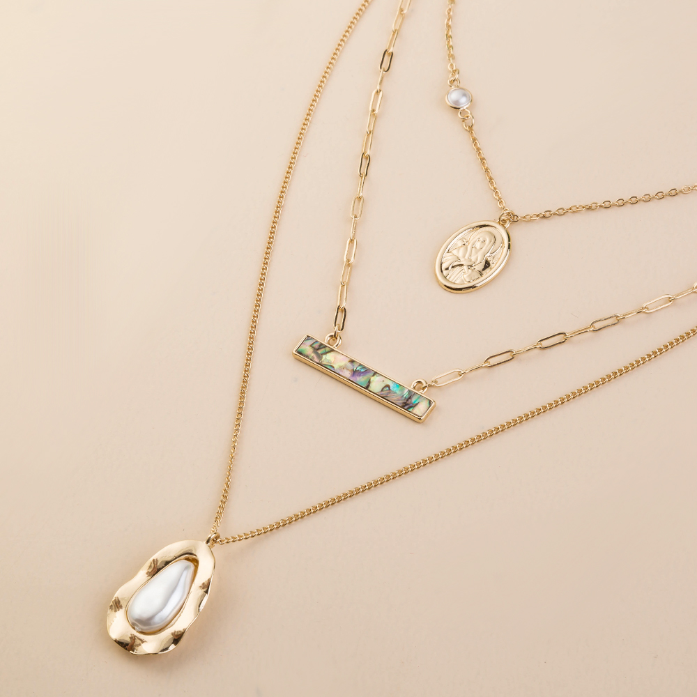 Amazon hot sale abalone shell accessories simple multi-layer metal pendant necklace women