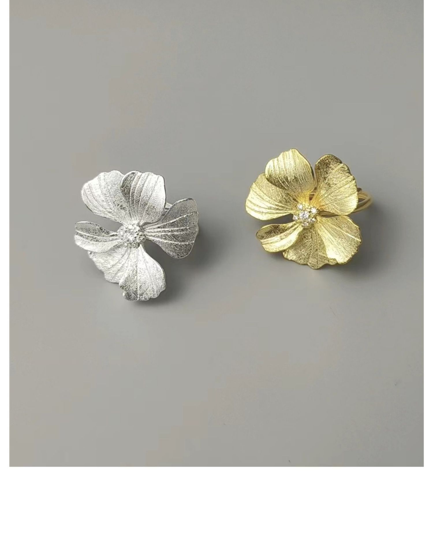 Product information:Material: 925 silver Applicable Gender: Female Color classification: bright silver, retro gold Size: Flower diameter is about 25MM, free size opening 10-16 can be adjusted