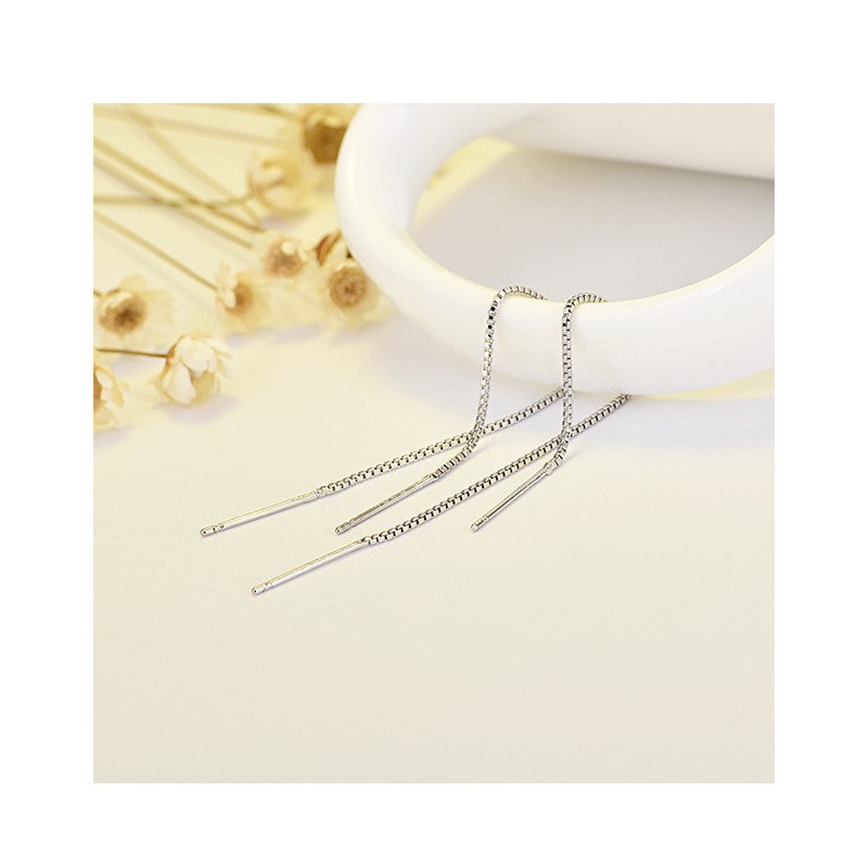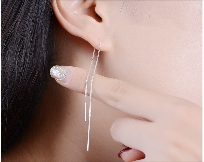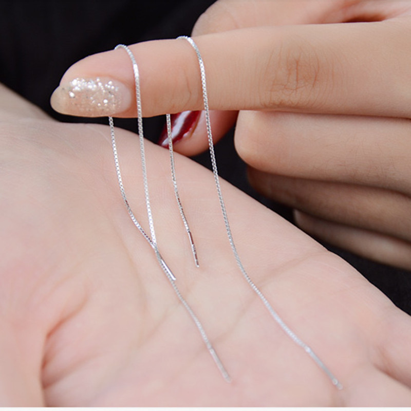 S925 White Fungus Line Female Simple Long Ear Chain