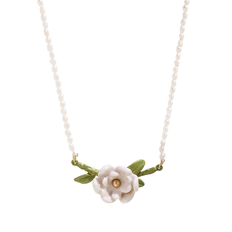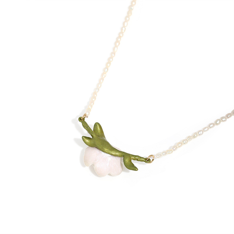 Product information:Type: necklace Color: Pearl Chain, gold plated chain Style: Women's Shape: Flower Popular elements: Flowers Style: SimpleSize: 42CM+5CMMaterial: Copper piece, gold enamel glaze, rice grain pearl