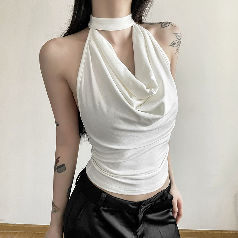 Product information: Pattern: solid color Color: black, white Elastic: medium elastic Size: S,M,L Style: slim fit Style type: street fashion Popular elements: no back Style: Halter Fabric name: Polyester