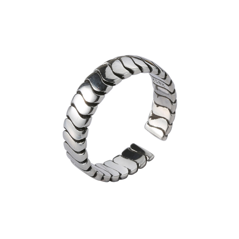 925 Thai Silver Distressed Spiral Ring European and American Engagement Ring Silver Plated Bracelet