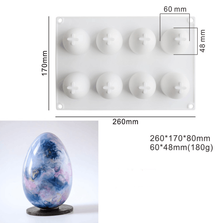 Material: SiliconeSpecifications: 8 with eggs MCM-65Product configuration: singleProduct size: 8 eggs-MCM-65: 260*170*80mm, D60*48mmProduct weight: MCM-65--180gProduct color: white