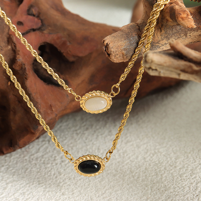 Product information:Color: P1549-gold double-layer necklace Applicable population: Female Chain style: O-ring chain Material: titanium steel Shape: Geometry Popular elements: chain