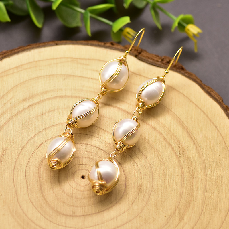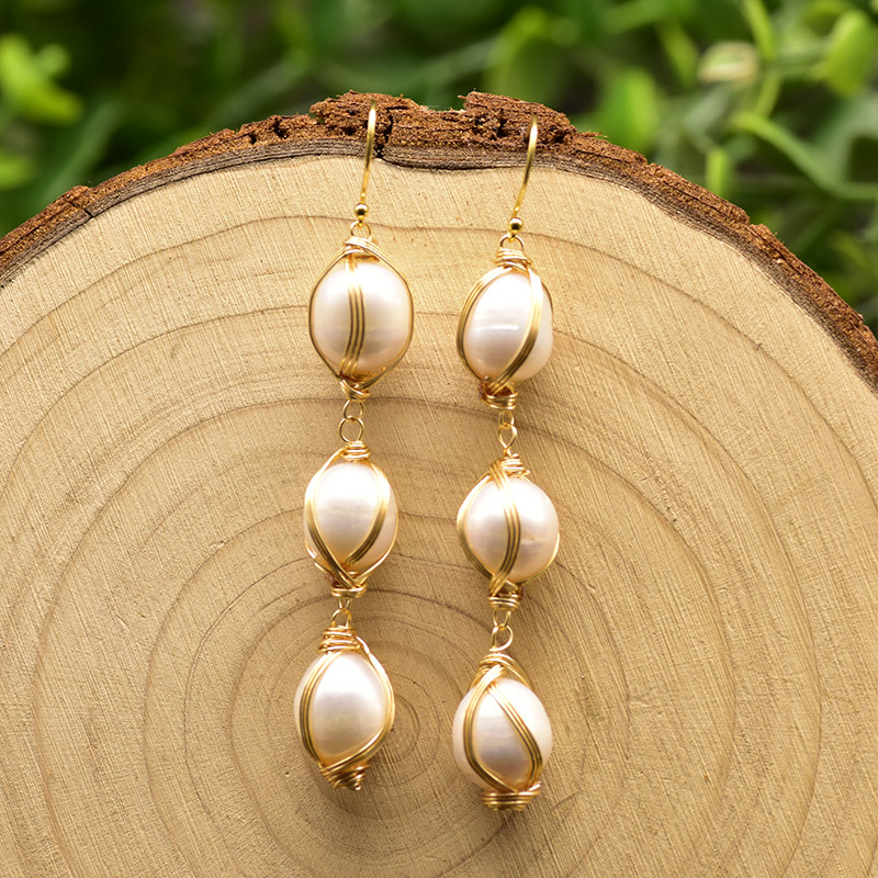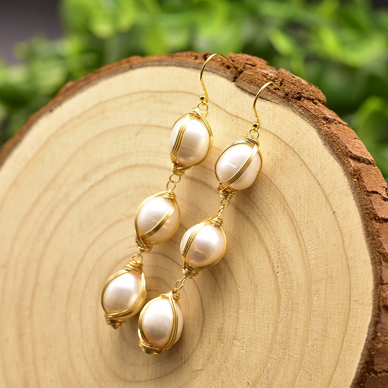 925 Silver Natural Freshwater Pearl Wrap Earrings