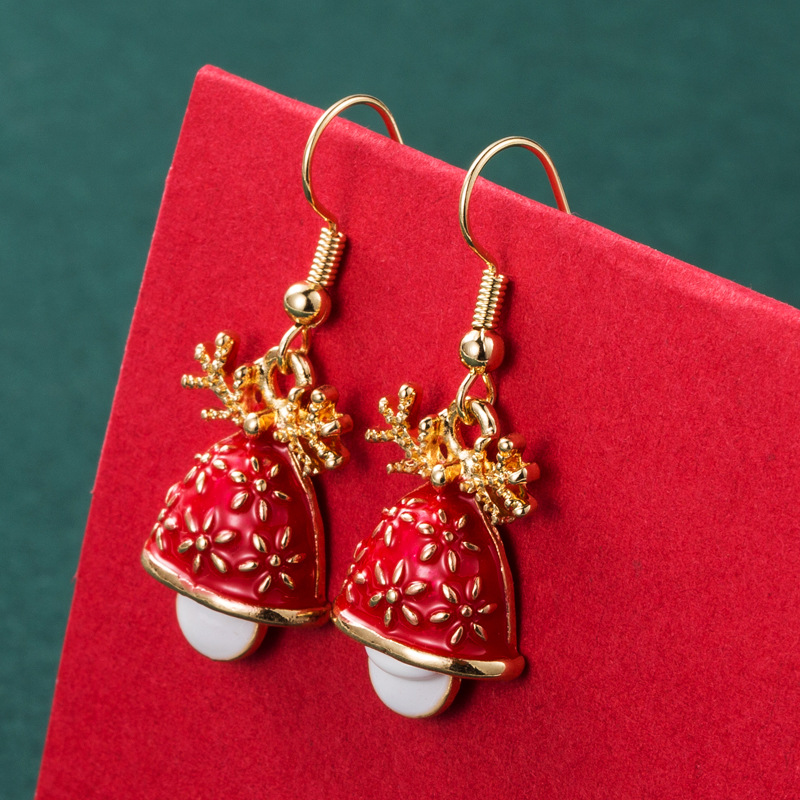 Product information:Material: gold-platedStyle: European and AmericanStyle: Women'sModeling: GeometryTreatment process: dripping oilColor: Christmas tree, bells, snowflakesPacking:Gold-plated earrings X1