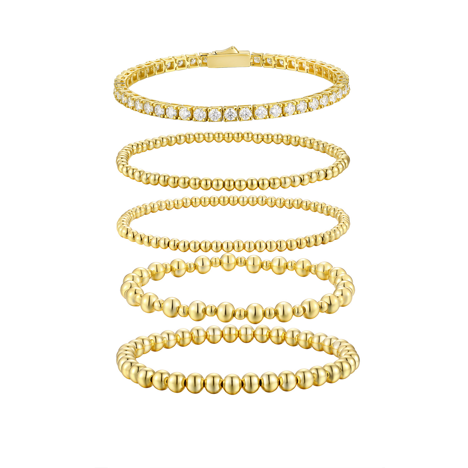 Moissanite Round Beads Classic Style Gold Twin 5-piece Bracelet Set Does Not Fade