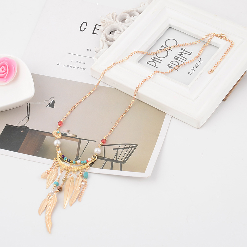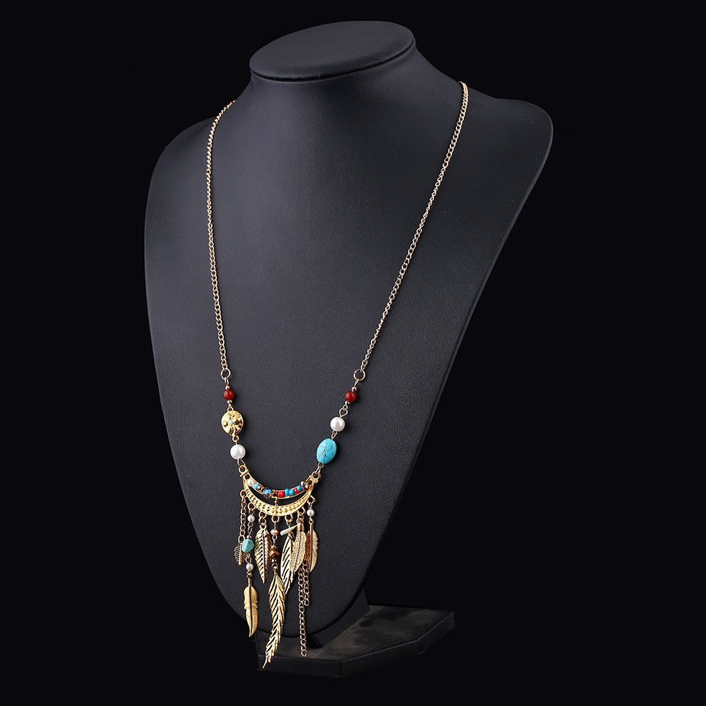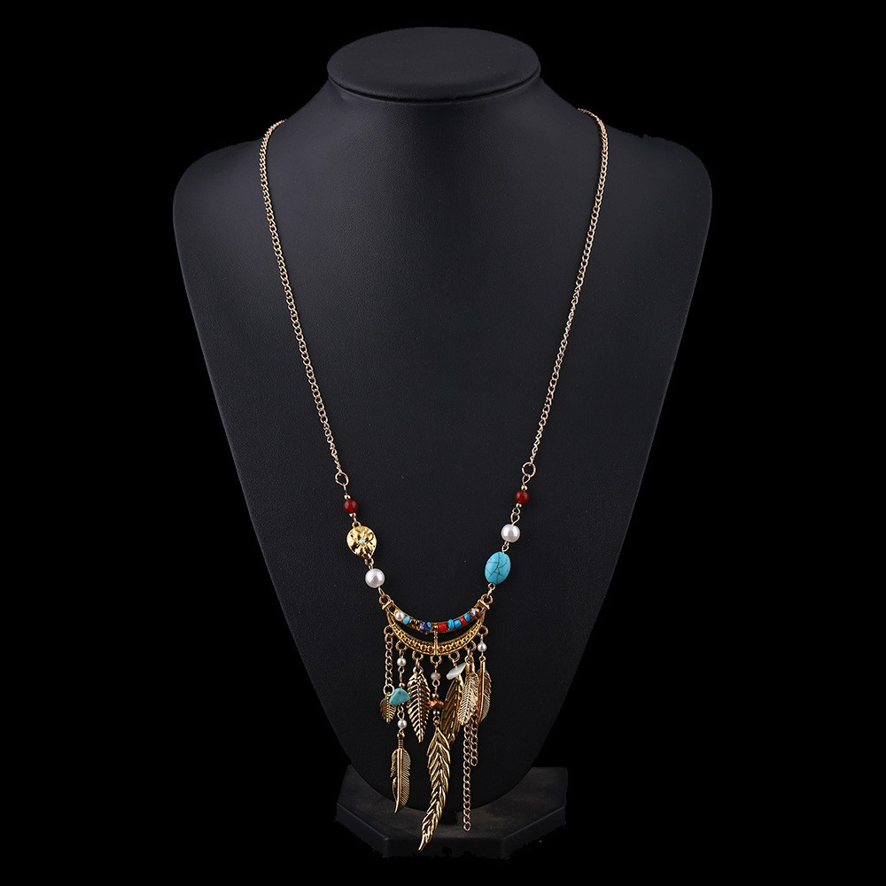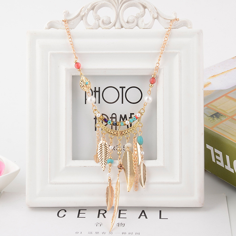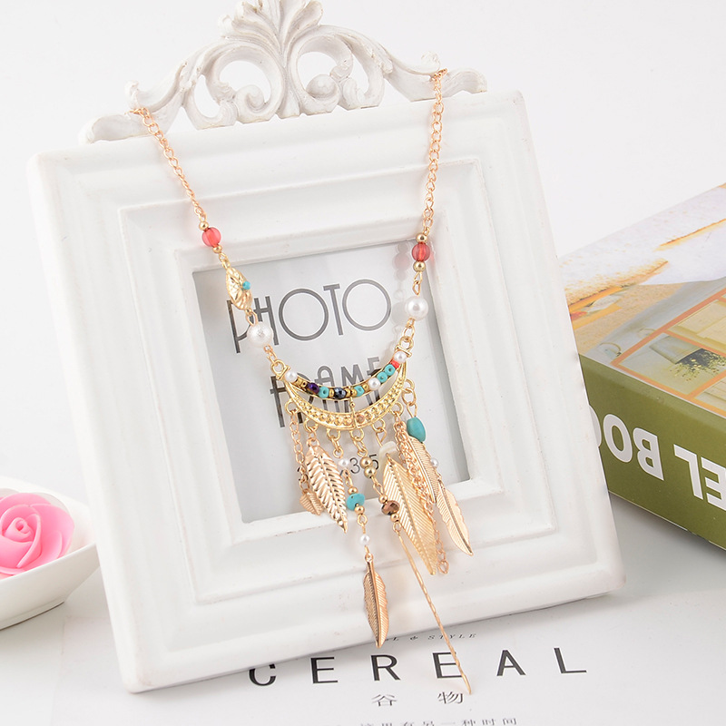 Long Sweater Chain Tassel Leaf Pendant