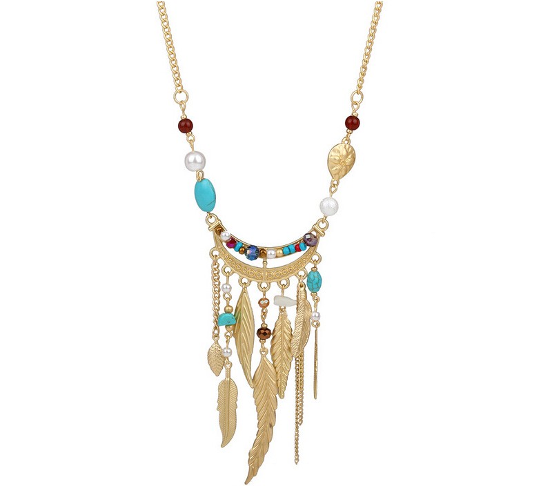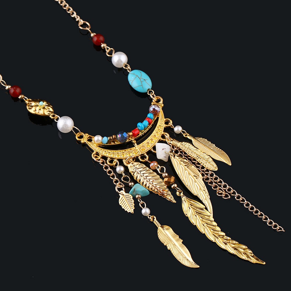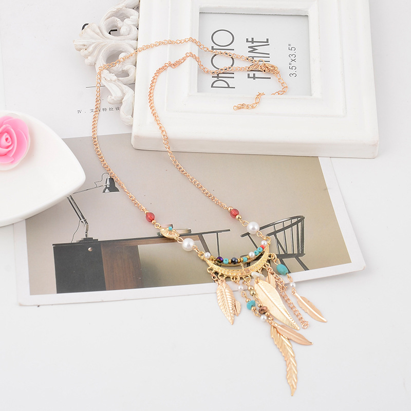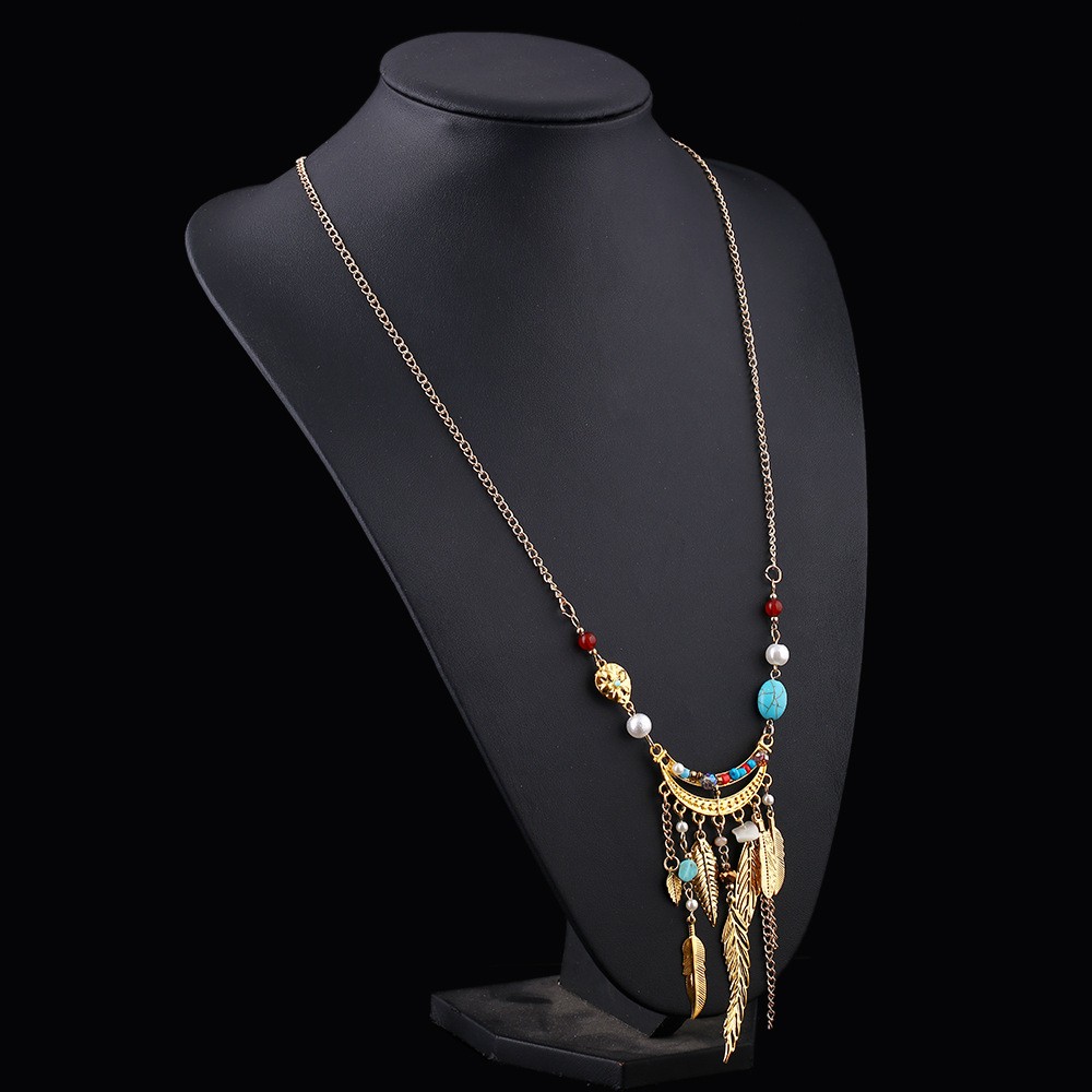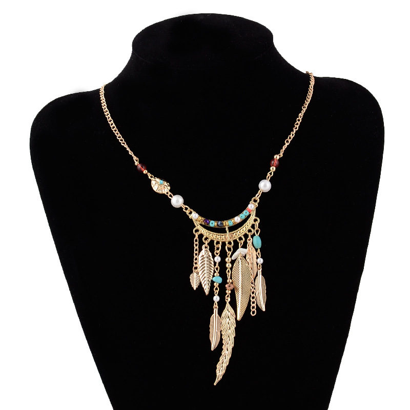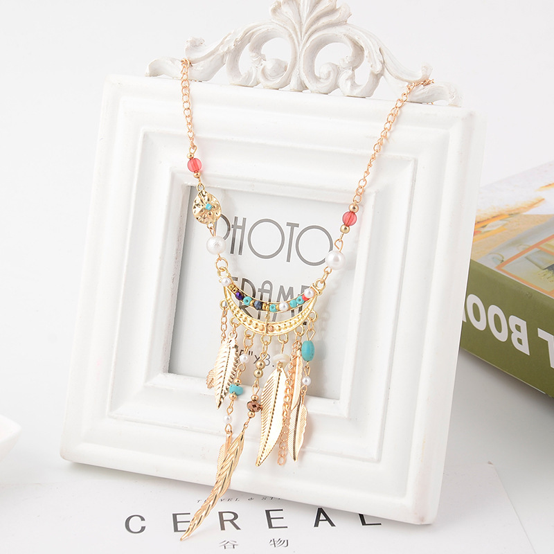 Long Sweater Chain Tassel Leaf Pendant