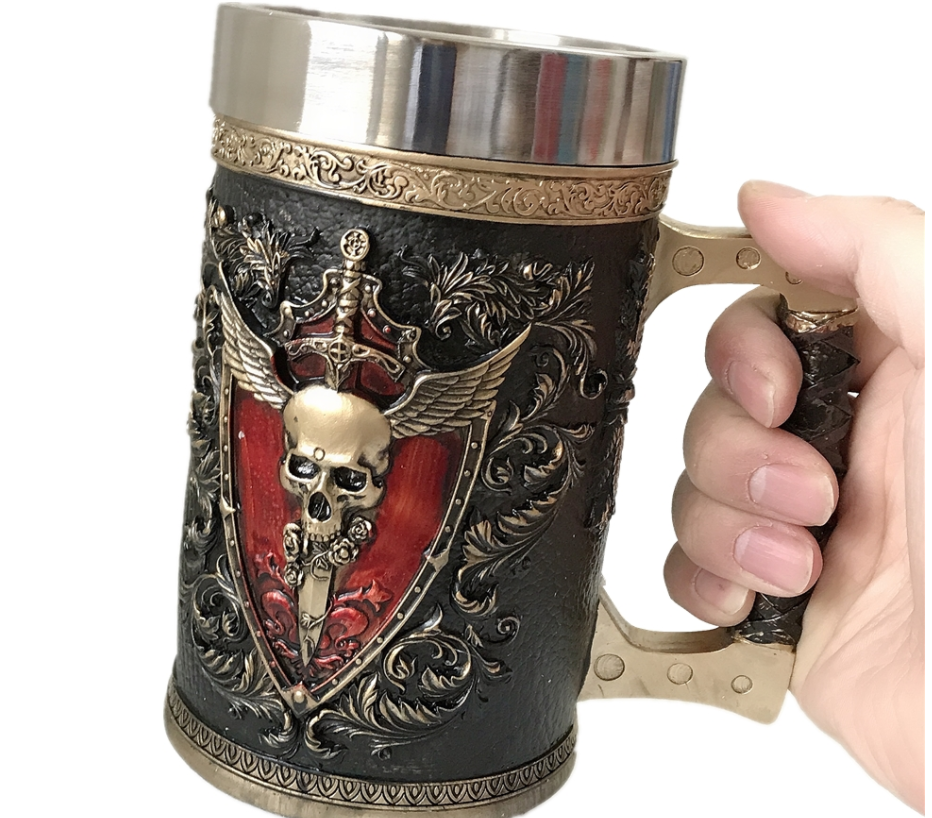Product Category: Beer MugMaterial: Stainless steelCapacity: 501-600mlStyle: European and AmericanColor: yellow sword beer mug, five-sided beer mug, lion head beer mug,Packing boxesStyle: Skull