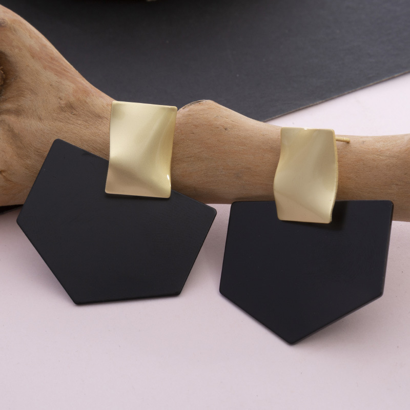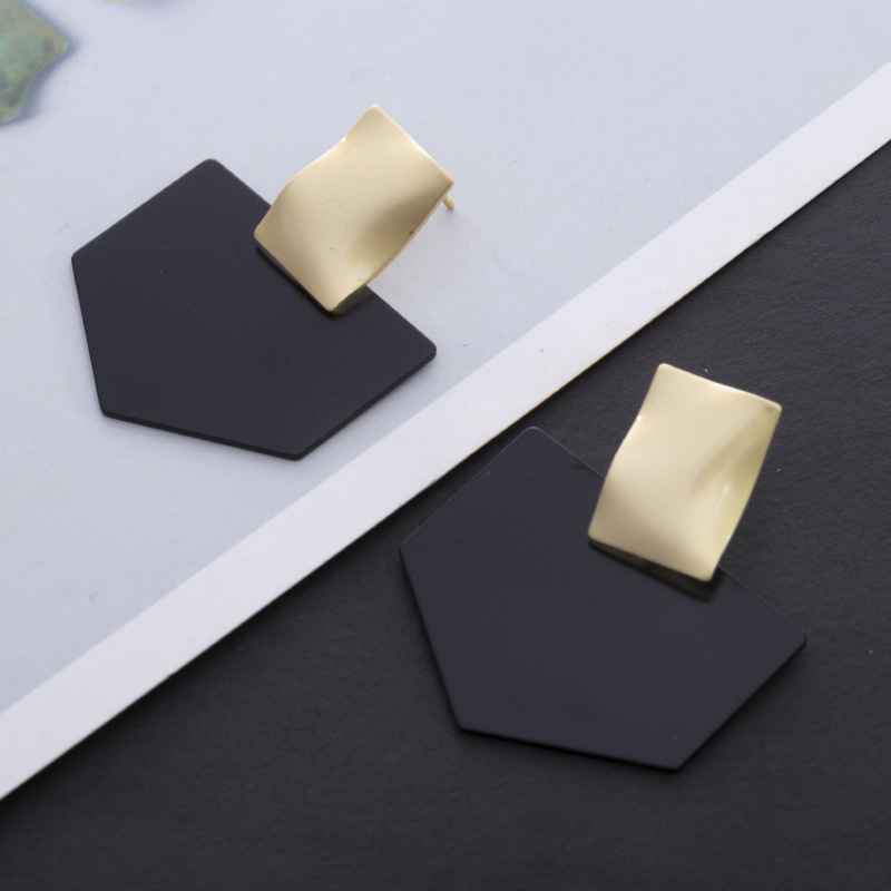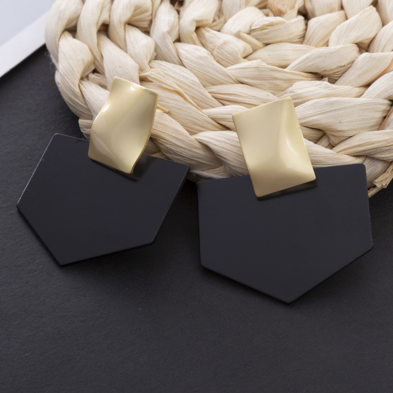 Product Details:Material: AlloyStyle: womenShape: geometricTreatment process: electroplatingColor: HJ1010-1 black gold, HJ1010-1 black silverSize: Length: 43mm Width: 35mmPackage Contents:Alloy earrings X1pair