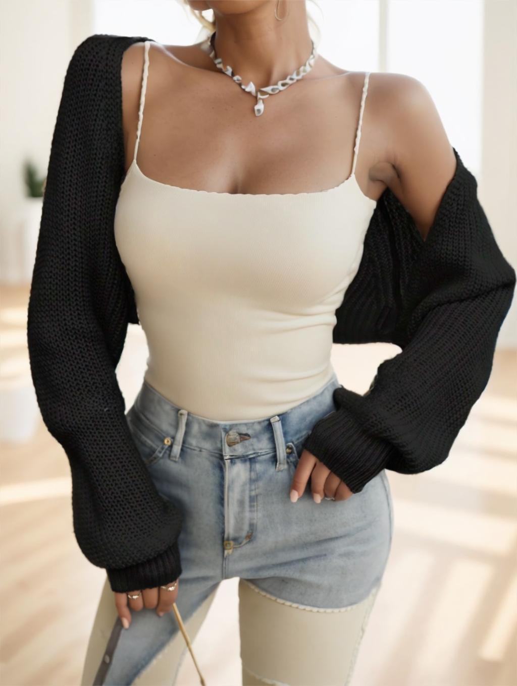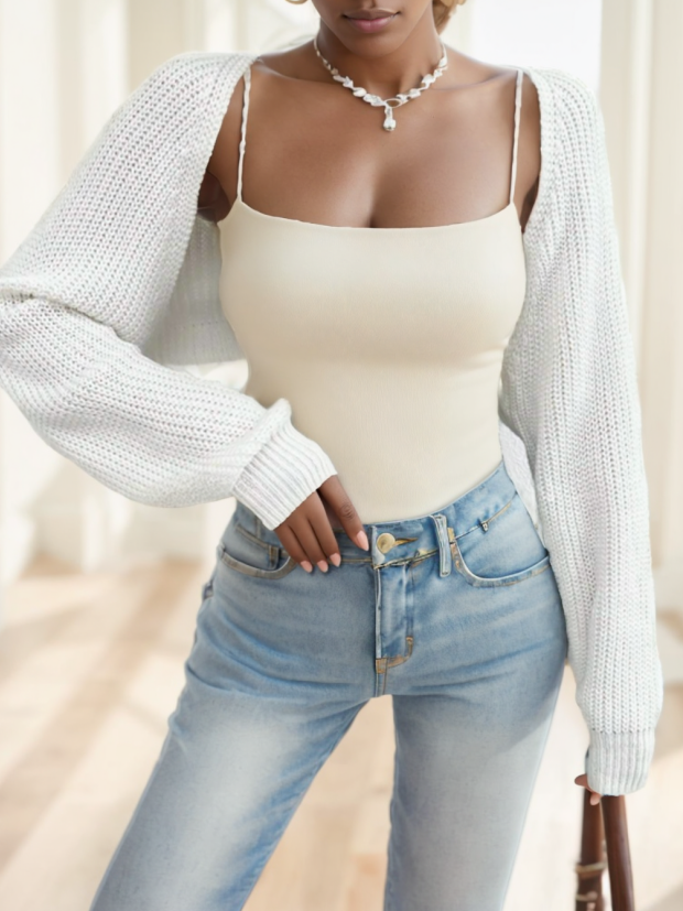 Women's Solid Color Ribbed Knit Sleeveless Cropped Cardigan For Fall