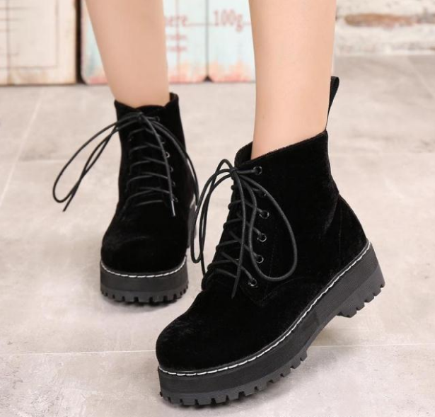 Vintage boots velvet straps ankle boots female tendon thick Martin boots