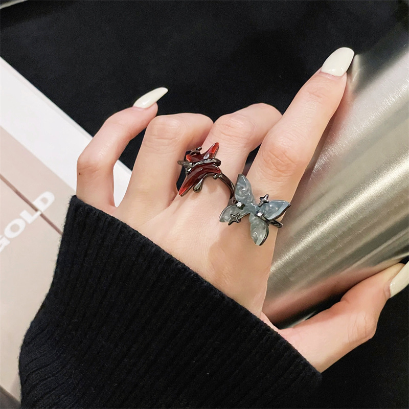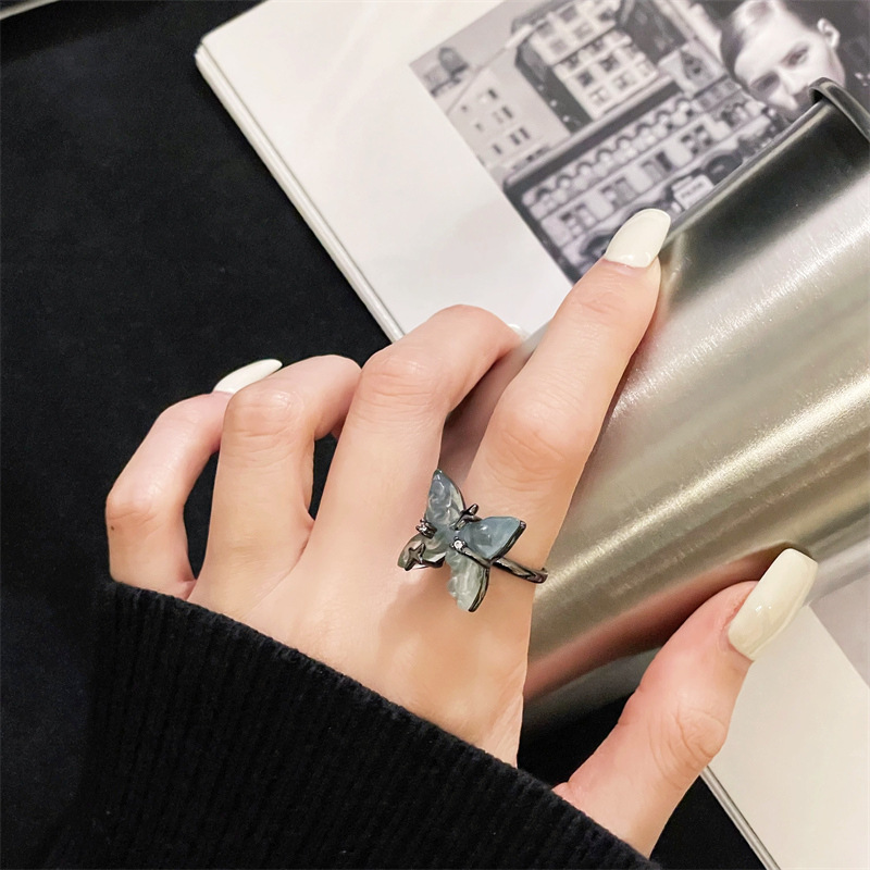 Product information:Type: Ring Color: JZ5386,JZ5387 Size: adjustable opening Style: Female Material: Copper Modeling: Insects Popular elements: Butterfly Style: dark style