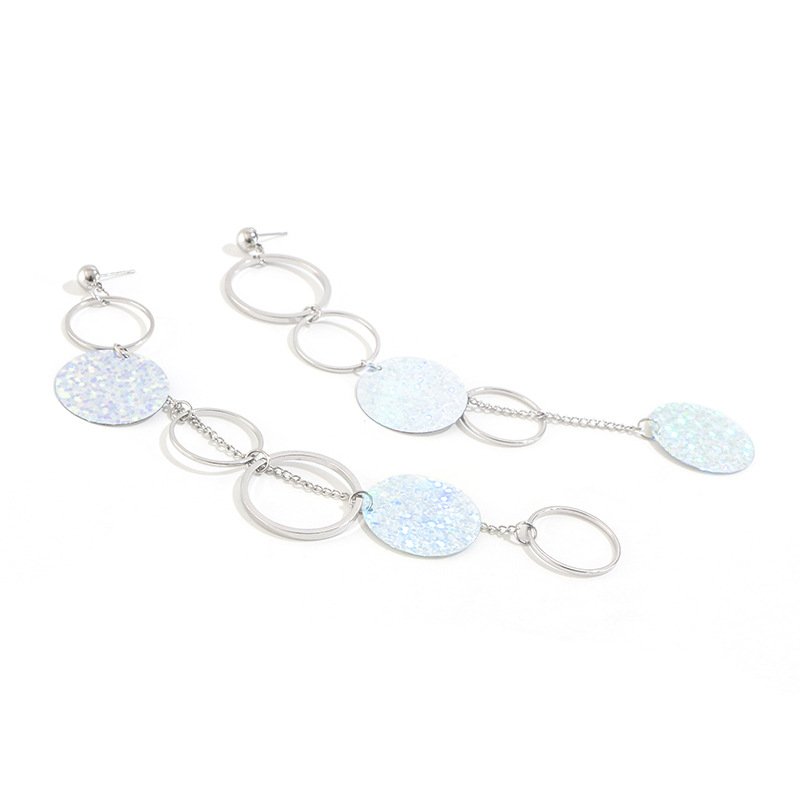 Creative Exaggerated Shiny Disc Chain Earrings Fashion