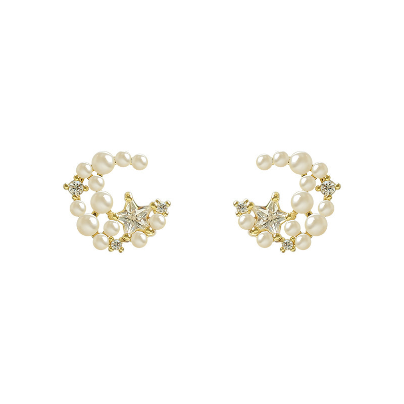Product information:Treatment Process: ElectroplatingColor: Sterling Silver Needle-4695 real gold platingApplicable people: womenStyle: MoonMaterial: CopperShape: StarStyle: Korean style