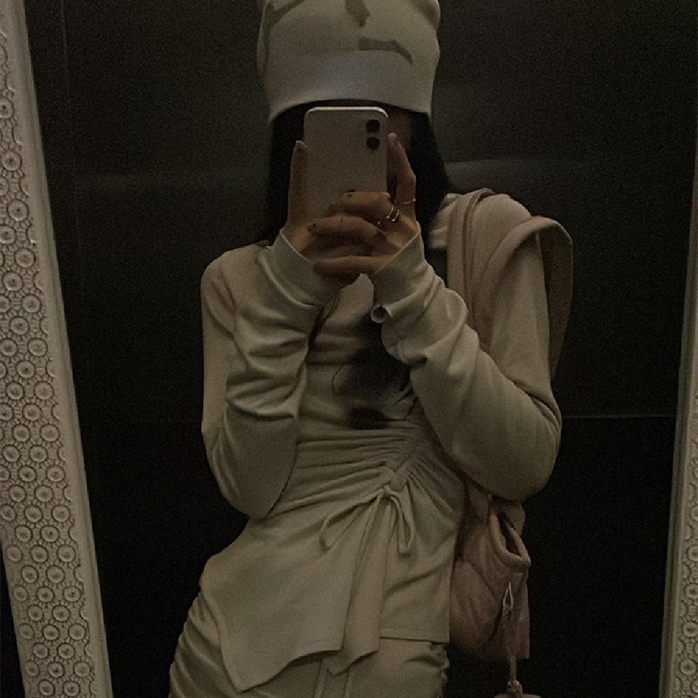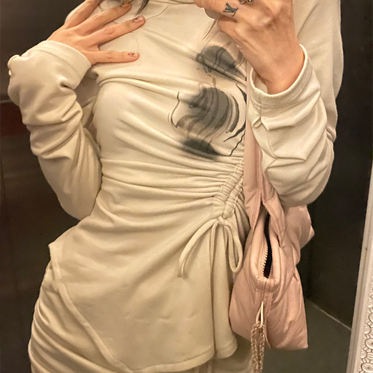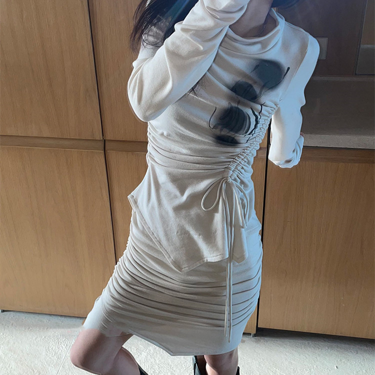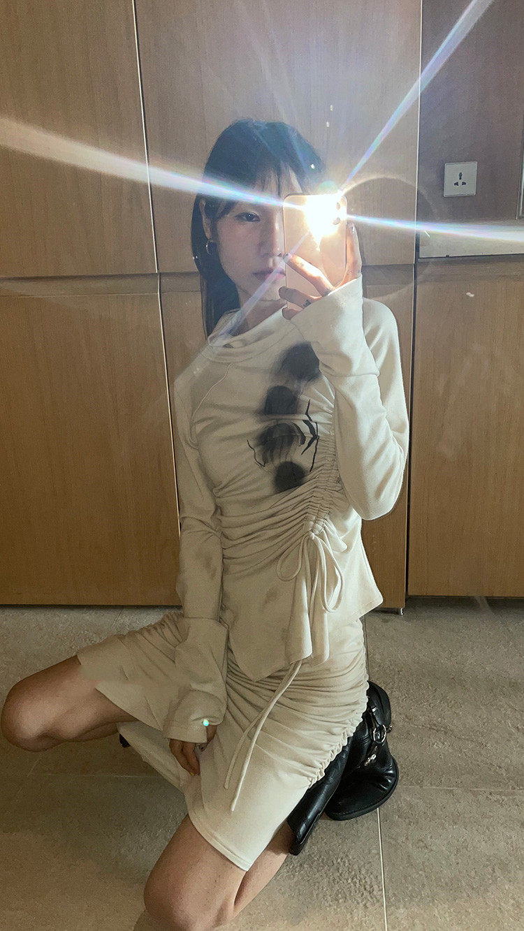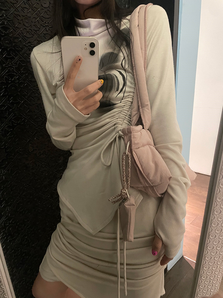 Color classification: Belted waist top, hip elastic skirt