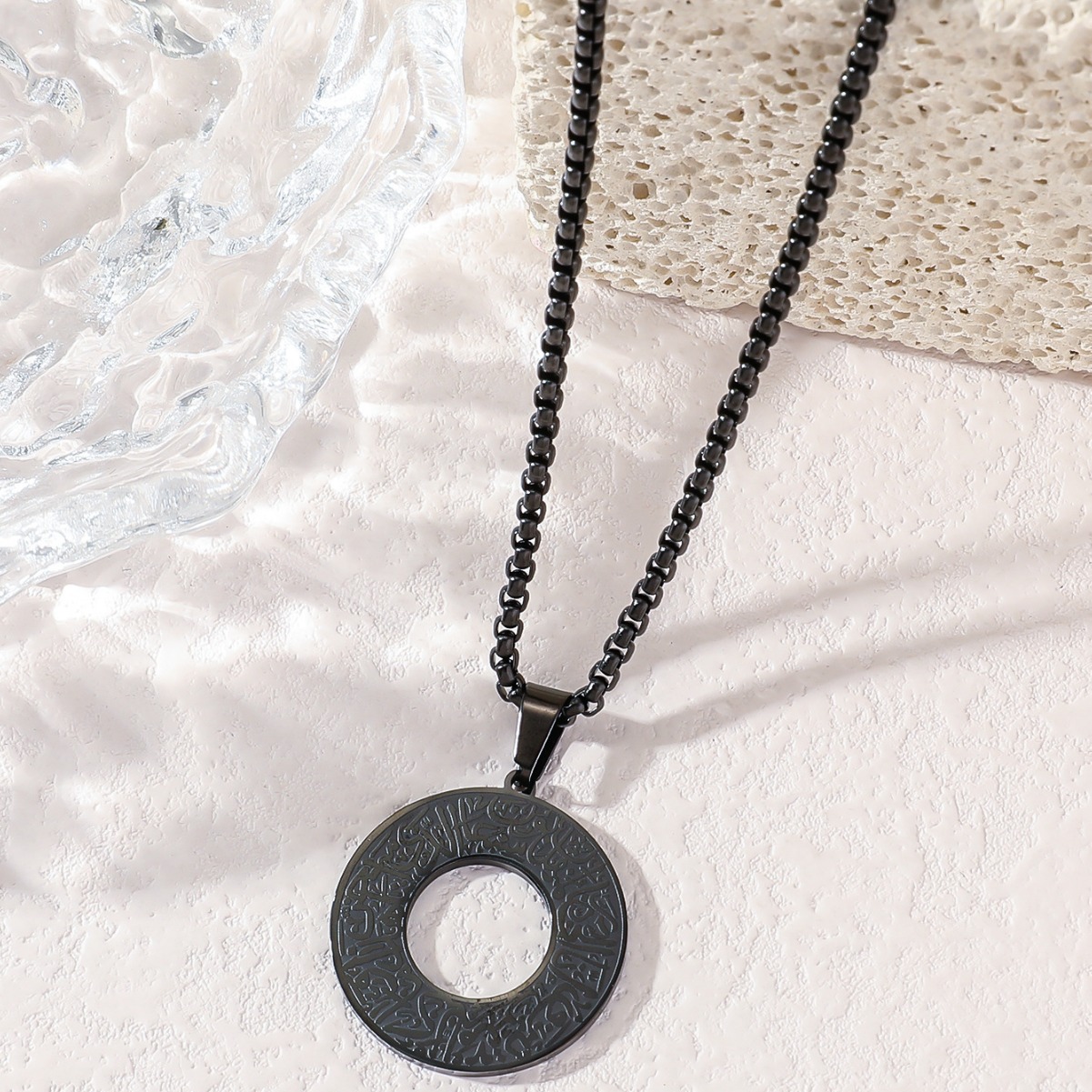 Pattern: round hollow pendant titanium steel necklace
