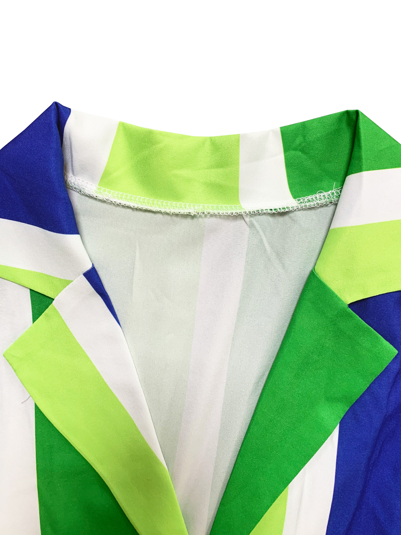 Product information: Pattern: stripes/Plaid Fabric name: Polyester Color: green Size: S,M,L,XL,XXL Style type: private clothing socialite Popular elements: contrast color Style: vacation style Process: Printing
