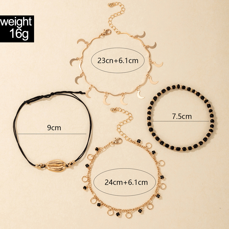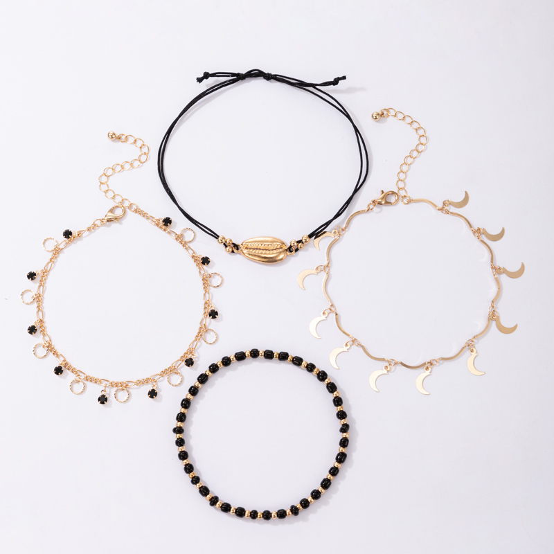 Hollow Anklet Shell Black Rice Bead Circle Multi-layer 4-piece