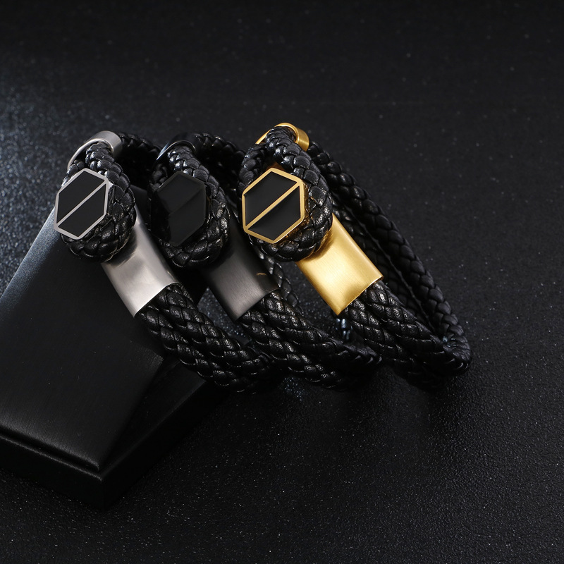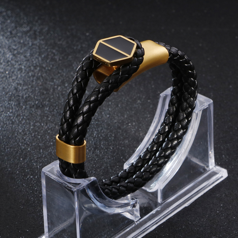 Product information:Material: Titanium steel cowhideProcessing technology: preparationType: BraceletStyle: Men'sModeling: GeometryPacking list:Bracelet*1