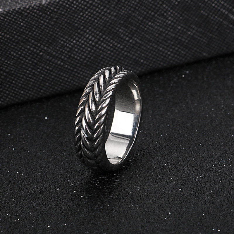 Retro personality mesh woven men's ring titanium steel woven men's ring