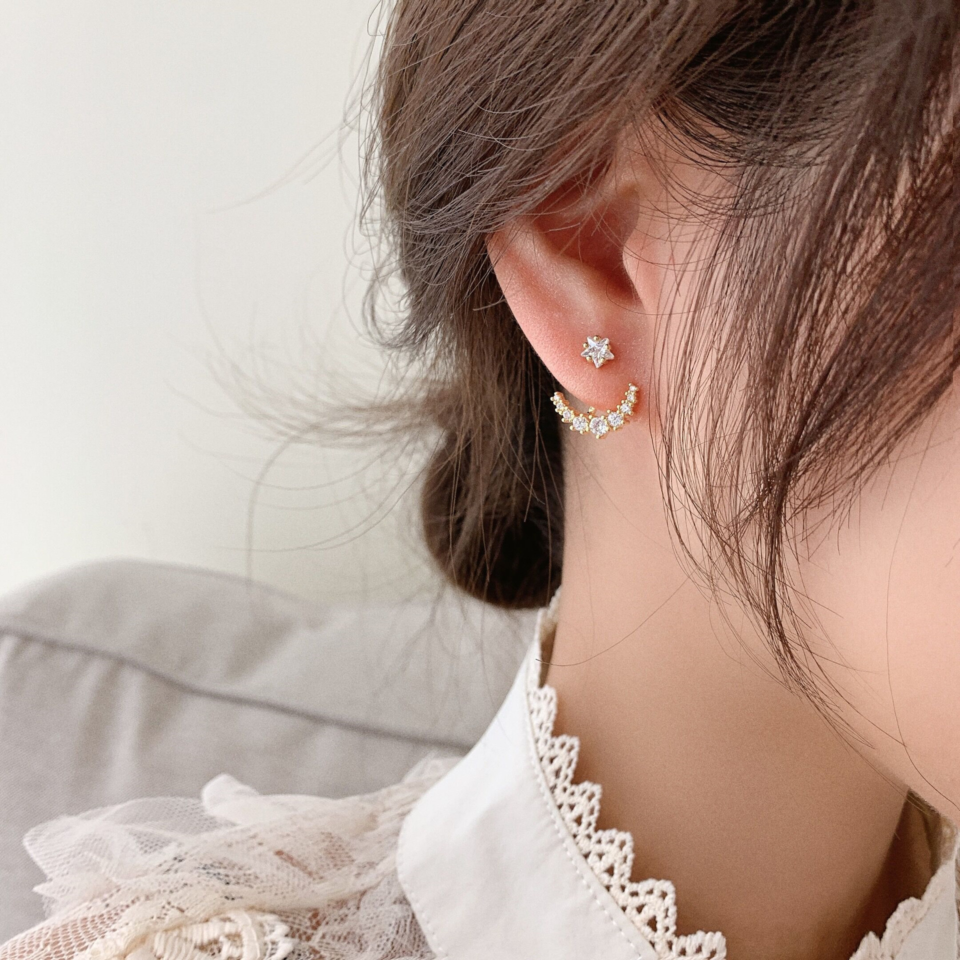 Material: 925 silver needle plated real gold zircon