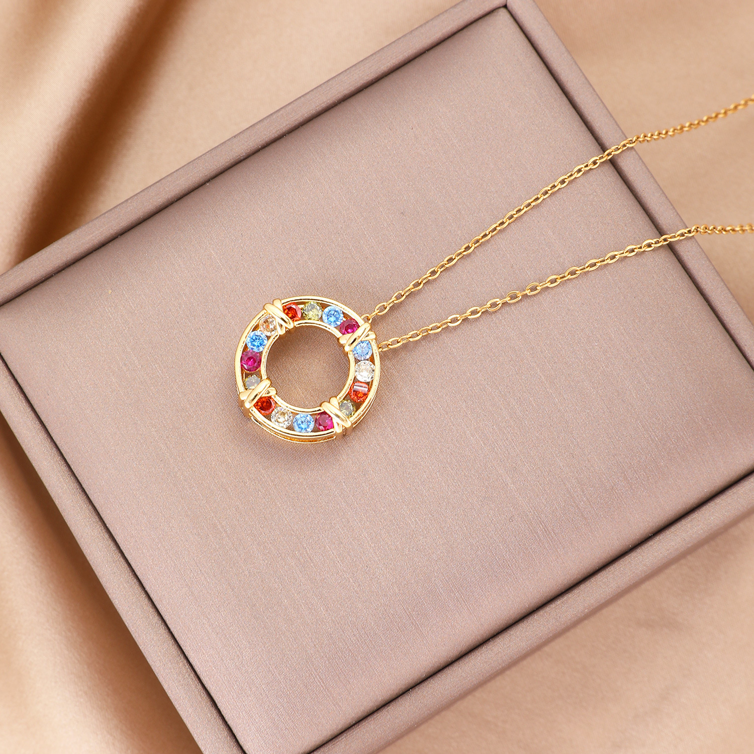 Product information:Treatment Process: Electroplating Applicable population: Female Pendant material: Copper Chain style: cross chain Material: titanium steel Shape: Geometry Popular elements: Circle Style: European and American