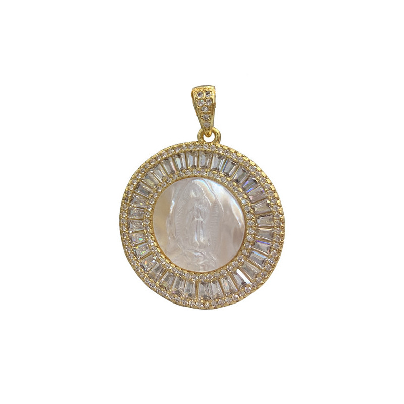 Material: Copper, Zircon, White FritillariaProcess: 18k gold platingSize: 26.5mm
