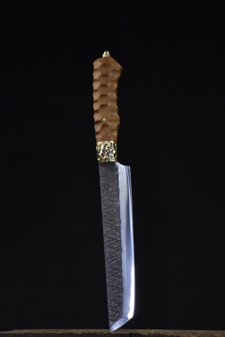 Full length: 38cmBlade length: 22cmHandle length: 14cmBlade width: 4cm at the widest pointThickness: 0.3cmBlade material: 7Cr17Mov (7 chromium 17 molybdenum vanadium steel)Handle material: rosewoodPacking list: 1* knife