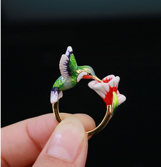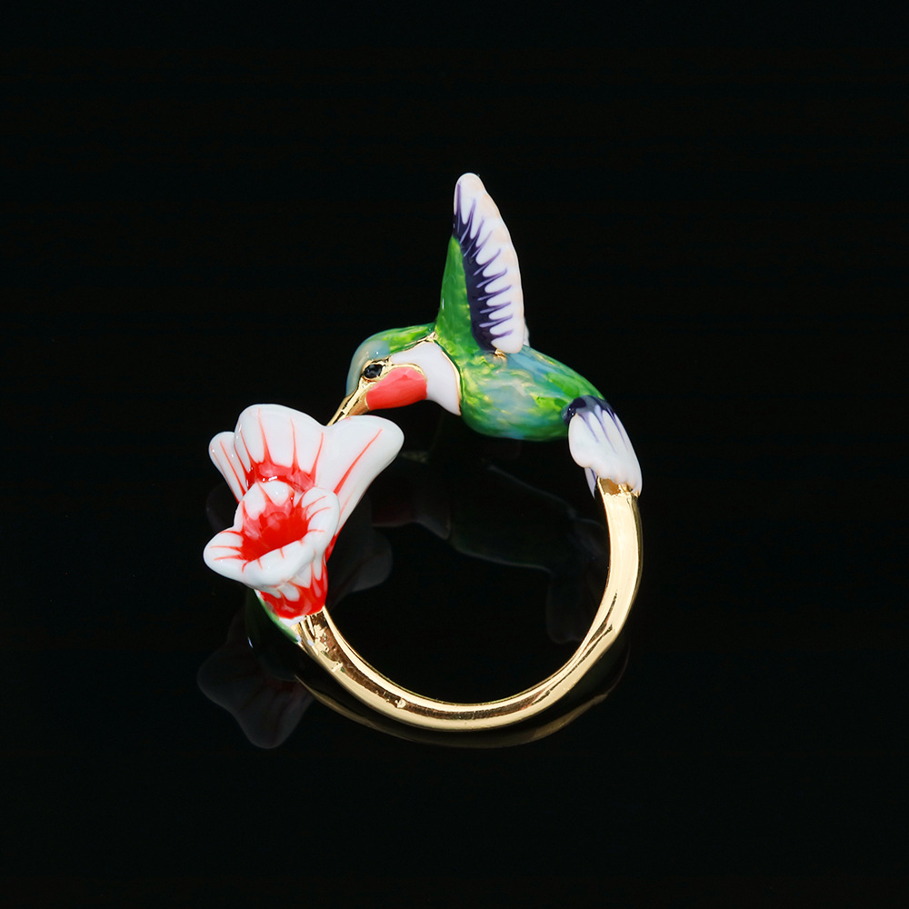 Product Details:Type: live mouthMaterial: CopperShape: birdTreatment process: electroplatingStyle: Women'sColor: greenSize: 7 # opening adjustable