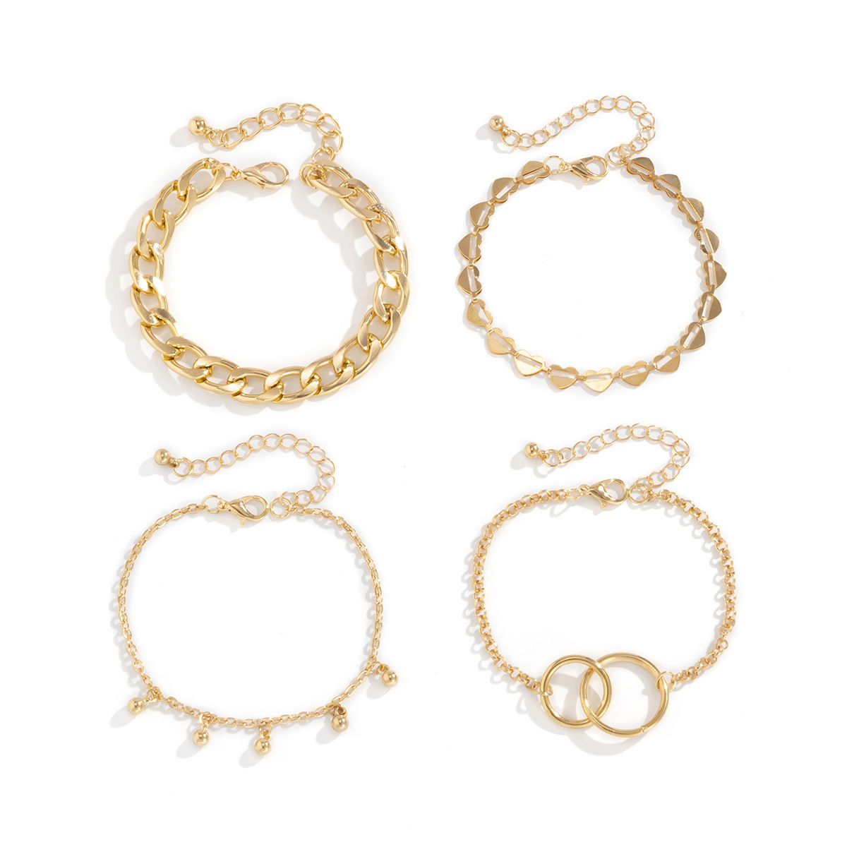 Personality Double-Loop Hanging Ball Tassel Set Bracelet, Hollow Heart-shaped Geometric Chain Bracelet Women