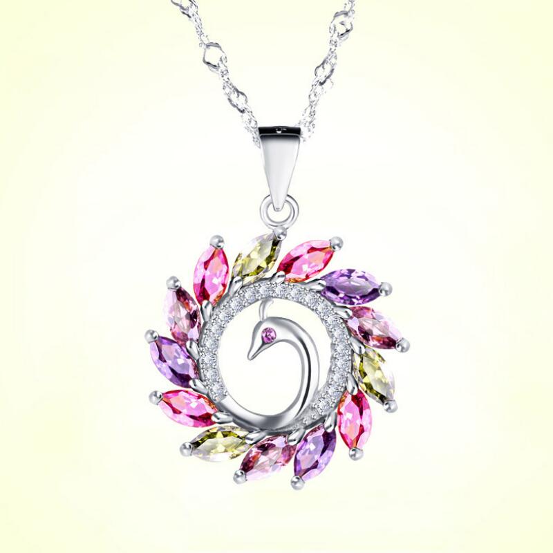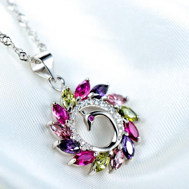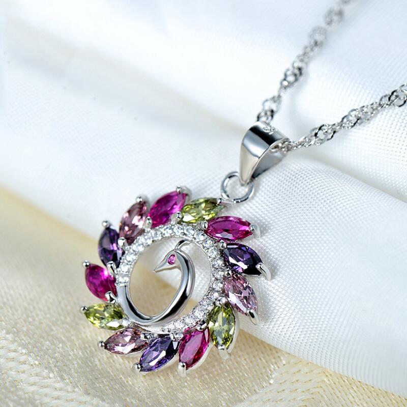 Female colorful peacock gem necklace