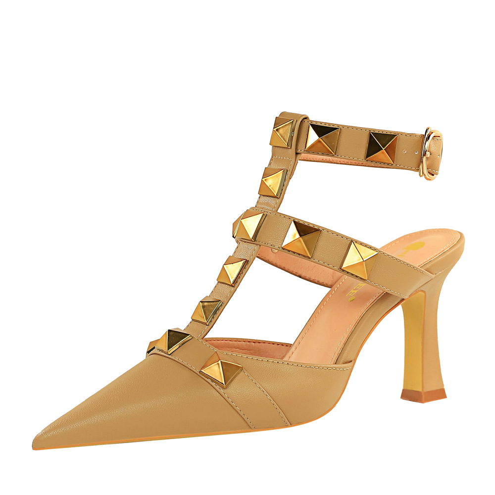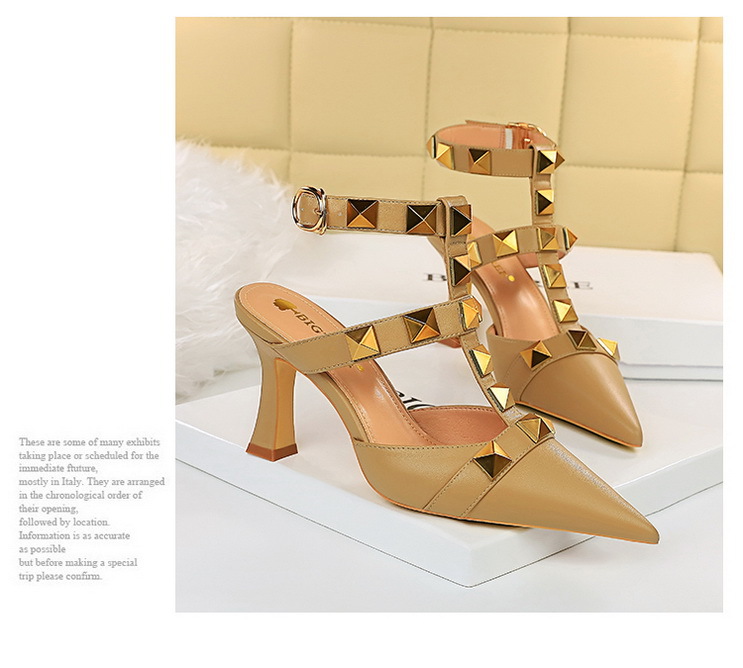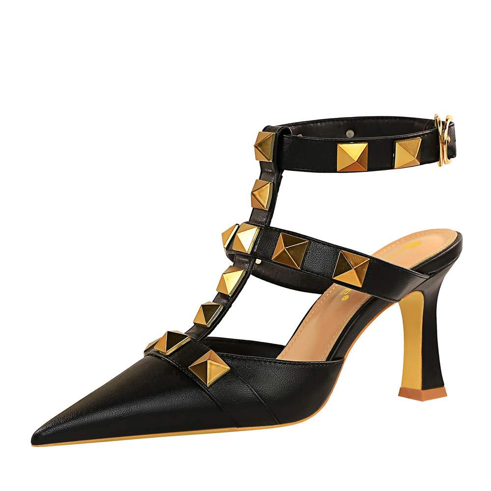 Popular elements: retro, European and American style, sexy, nightclub, high heels, metal rivets, large rivets, Roman style, Roman shoes