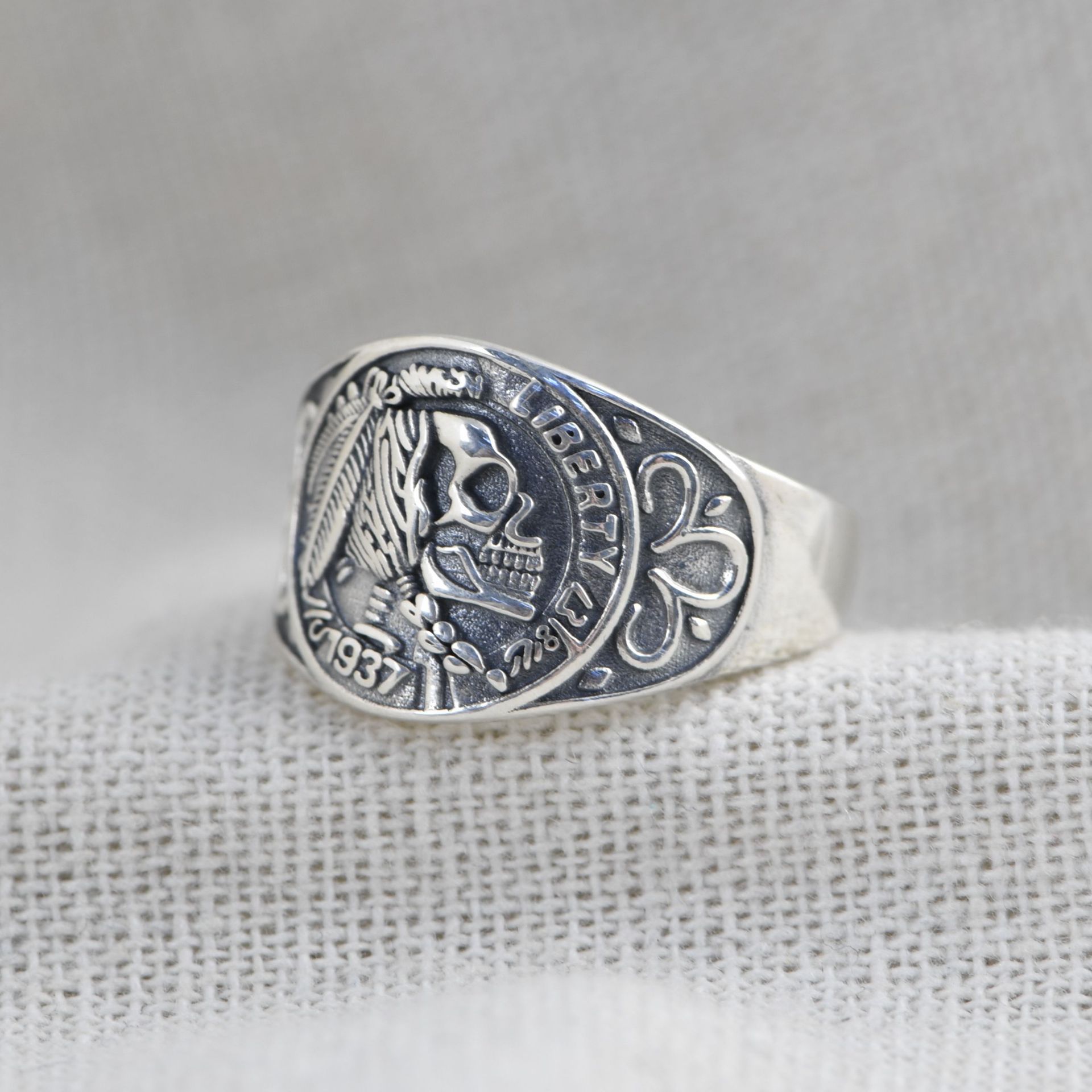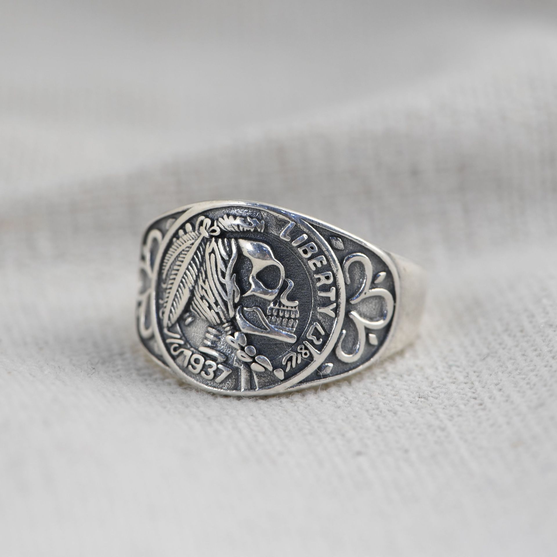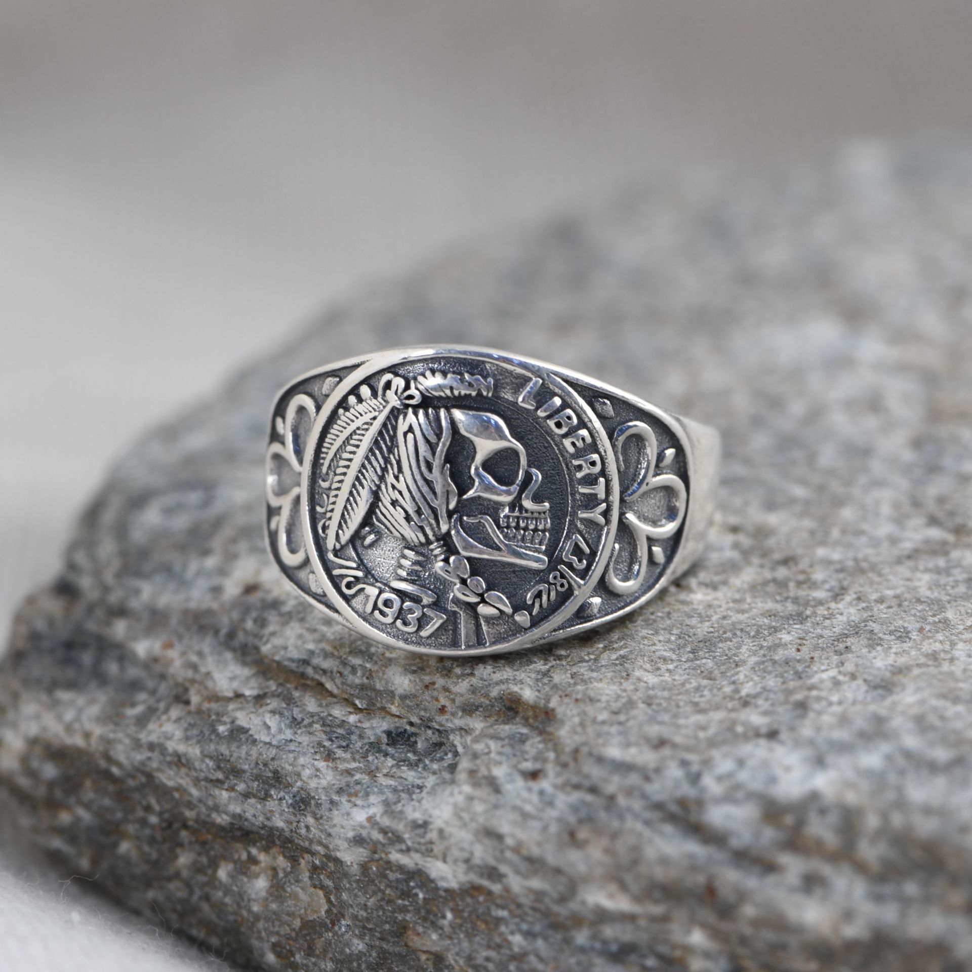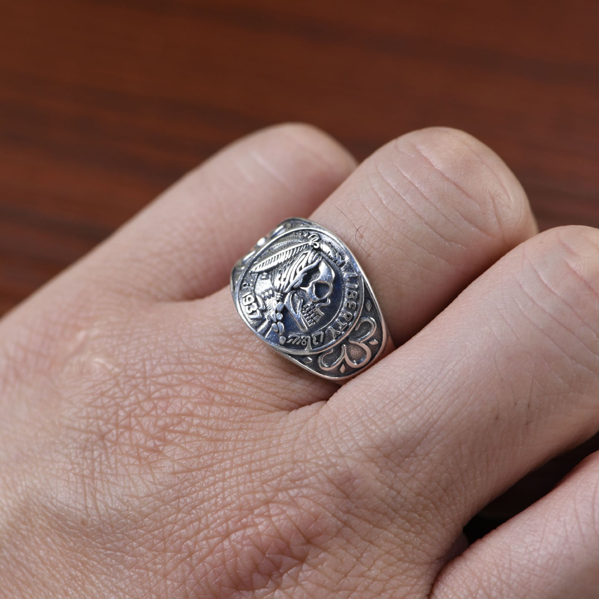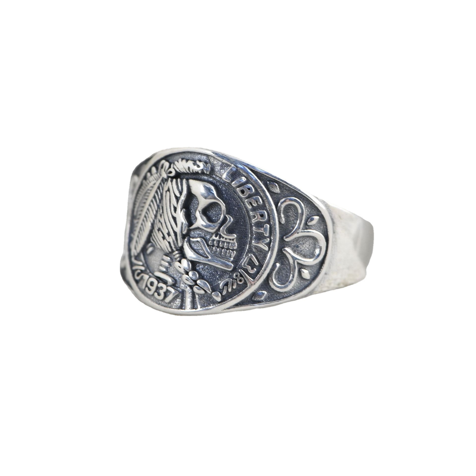 Retro Fashion Thai Silver Indian Skull Live Ring