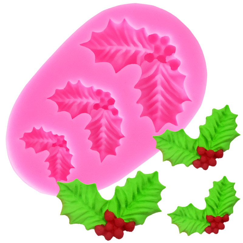 Product Name: Holly Leaf Silicone MoldMaterial: environmentally friendly food siliconeWeight: 45gColor: pinkPurpose: Cake Chocolate Fondant MouldSize: 8.7*5.5*1.cm